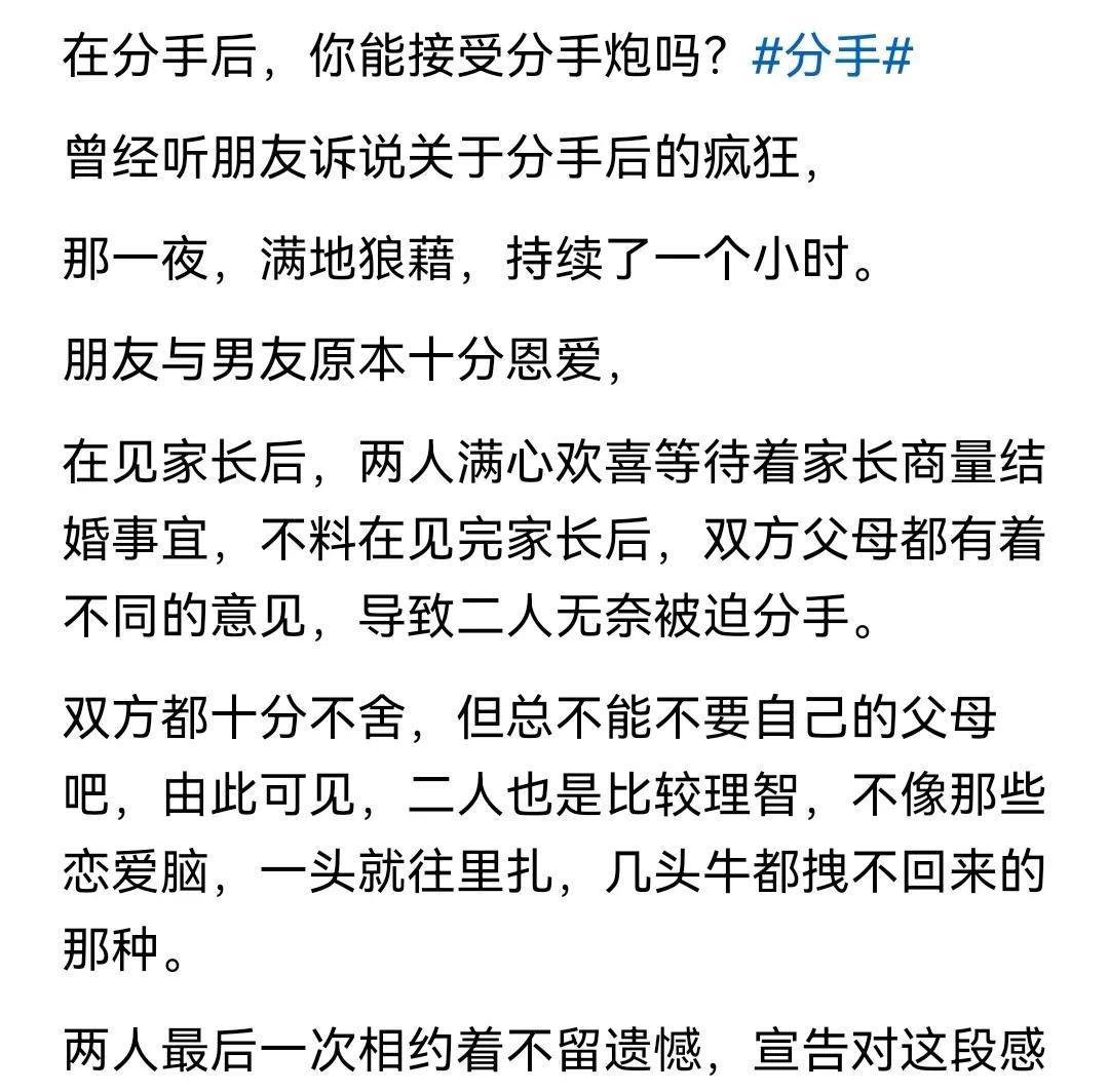 这是什么前卫的话题?叫作“你能接受分手炮吗”?你能接受吗? 点点关注不迷路,文章