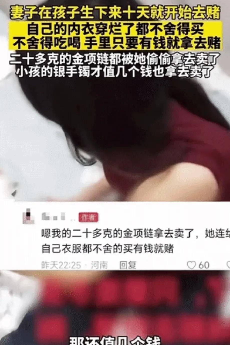 慢慢的,时间长了,丈夫才发现妻子好像越陷越深,他终于开始劝解她,让她要么出去找个班上,要么好好照顾一下家里,然而妻子却好像听不进去,两人也渐渐的因为此事开始吵架! 没过多久,妻子竟然发现怀孕了,丈夫知道后,心里想着这下有了孩子,妻子的脾气应该会改变,也就更加期盼这个孩子的到来! 终于,两人在相安无事中,孩子出生了,本以为这下妻子可以好好的在家照顾家庭,照顾孩子了,然而现实却总是打脸! 妻子在孩子生下来十几天后,又开始去赌了,丈夫发现后,又与其大吵了一架,可这妻子还是死性不改,甚至连家里的金项链和小孩子的银手镯也偷偷拿着出去了卖了! 丈夫说,她自己的内衣穿烂了都不舍得买,也不舍得吃喝,手里只要有钱就拿去赌,我真的受够了! 都说黄赌毒猛于虎,只要沾上其中一样,不管是自己还是家庭,肯定就快支离破碎了! 大家都知道十赌九输,那为什么那么多人又深陷其中,无法自拔呢? 所以,遇到这种赌徒,千万不要想着她有一天会改邪归正,他们是不会改的,还是带着孩子尽早远离吧! #记录我的2025#