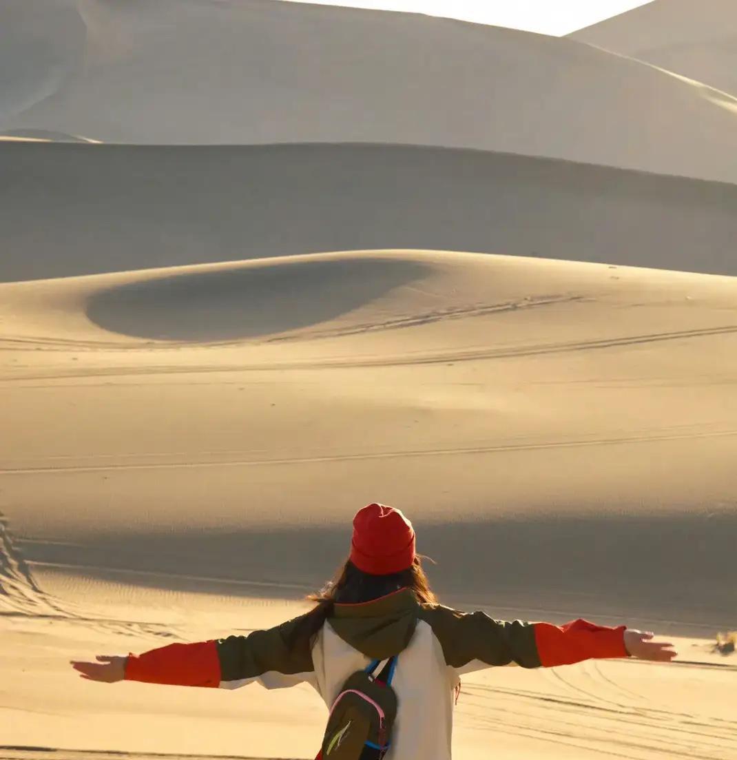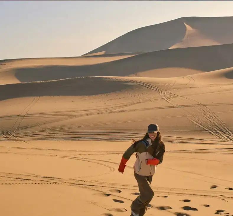 刘雯敦煌沙漠行:自然与时尚的完美碰撞[比心] 8月8日,国际超模刘雯现身甘肃敦煌,受邀参加Peak Performance壁克峰“借色自然”追光俱乐部活动。凌晨六点,她身着品牌2025秋冬主推的“日光橙”彩壳外套,与一众户外爱好者齐聚鸣沙山月牙泉畔,在沙丘间静待日出。当第一缕晨光刺破天际,她手机里的照片记录下与友人相拥的剪影——沙丘连绵如金色海浪,远处月牙泉倒映着霞光,而刘雯在沙海间轻盈穿梭,宛如沙漠中的灵动精灵。[比心] 值得一提的是,此次活动选址敦煌并非偶然。作为古丝绸之路的文化枢纽,鸣沙山月牙泉的沙漠奇观与莫高窟的壁画艺术,恰好呼应了Peak Performance从自然光谱中汲取灵感的设计理念。刘雯在活动中表示:“户外时尚不该被定义,重要的是让身体与心灵都能自由呼吸。”[比心][比心][比心]