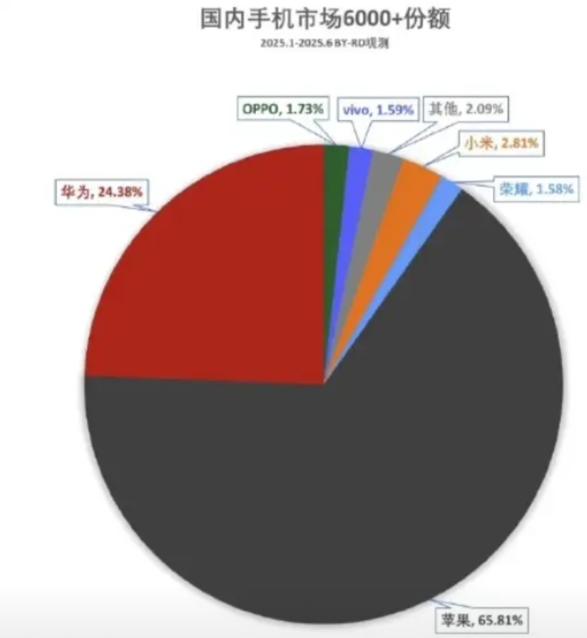 一些人说华为抢了其他国产手机市场,大家看看上半年各品牌手机6000+份额就知道。国产要是没了华为,一个能打的都没有,人家的产品装后门你也得闭着眼睛买。