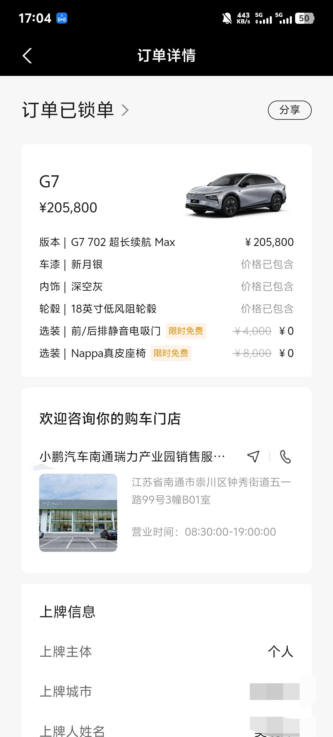 1.配置选的max.版本,银色外观,黑色内饰18寸轮毂感觉够了。 2.选择小鹏G7,主要有这几个理由。 💐它搭载智能辅助驾驶系统,上下班途中轻松应对拥堵,大大缓解驾驶疲惫。 💐它的全域800V高压SiC平台与5C超充AI电池太香了,充电12分钟就能跑500km,再加上702km的超长续航 ,跑长途也不怕。 💐车内空间宽敞,座椅舒适还带按摩功能,一家人出行