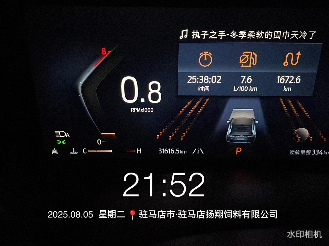 期间还原地开空调了有半个小时,总体来说感觉还可以,跑完以后一箱油剩38%,显示还可以跑334km。