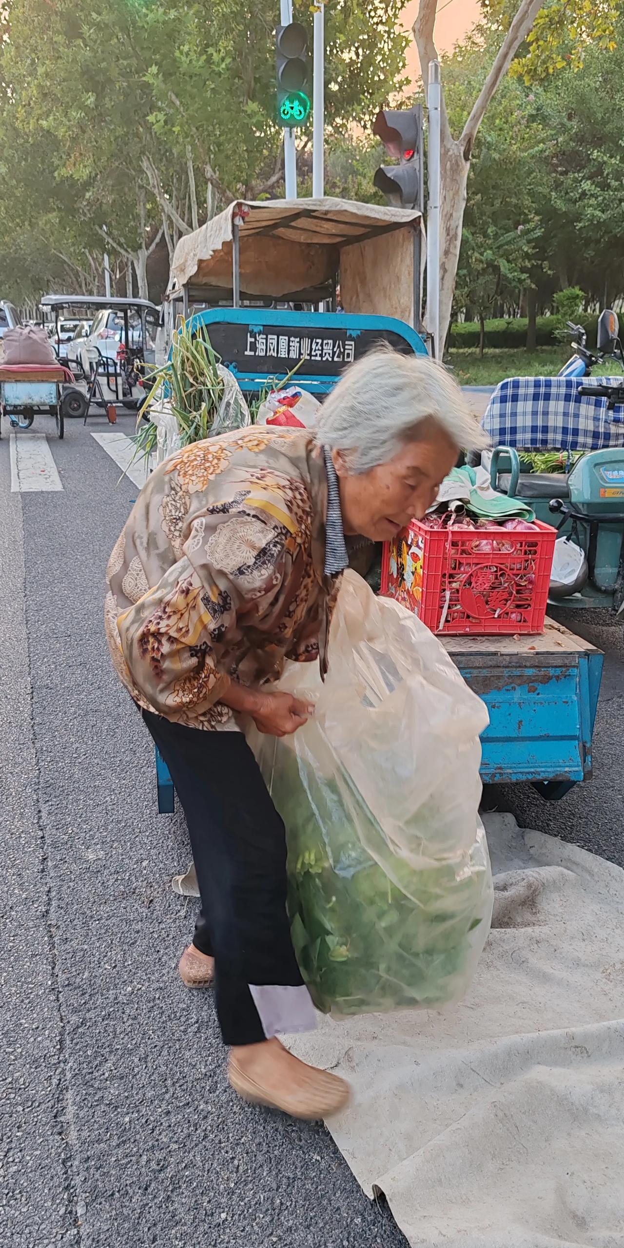 #晨景随手拍#这位80岁的老人,还种着几亩地呢。她说年轻人都在上班,自己种的菜吃不完,拿到早市来换点钱…… 她每天骑着三轮车要赶几十里路,天还没亮就到早市了。她说今天起得晚了,好位置都被别人占了,没地方摆摊了,只好凑乎着摆到边上了…… 她独自铺上塑料布,把菜一袋袋摆开,想伸手帮她一把,她却要强地说不用,我自己来,老人弯腰驼背但身体很硬朗。 有人说:这么大岁数了,就该在家享清福,还出来受这份苦?老人说:能吃能睡,能劳动才是最快乐、最享福的事,还说不让她种地才是遭罪……