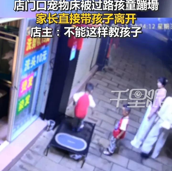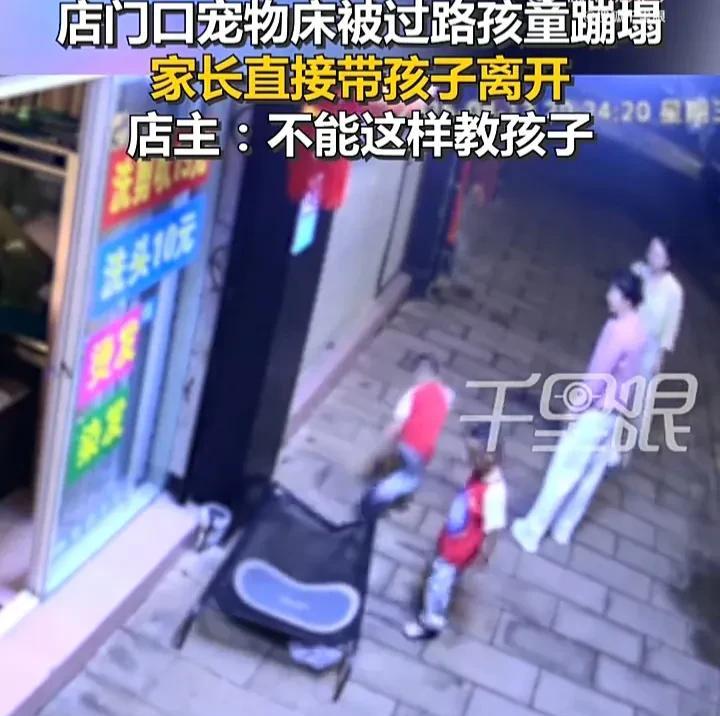 云南这一家人的脸丢大了!8月13日,云南玉溪两名家长带着两个孩子出门,在一家宠物店门口看见一个宠物床,于是两个孩子便当作蹦床一样在上面跳来跳去,结果弄坏了宠物床,两个家长见状也没有道歉和赔偿,直接就带着孩子离开了。