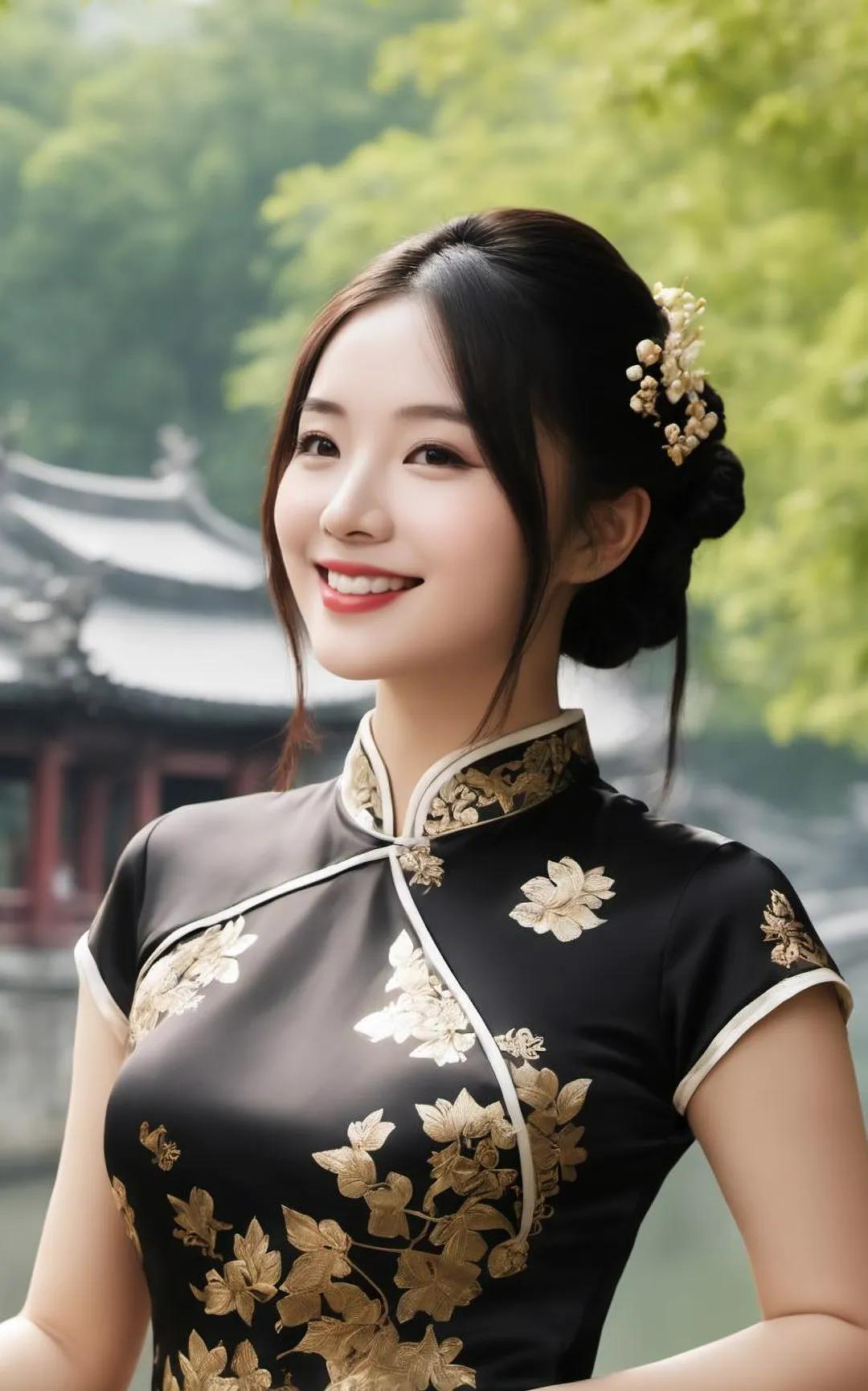 谁懂啊!中式旗袍配古典园林,这氛围感直接拉满。盘发精致,旗袍花色典雅,身姿曼妙,