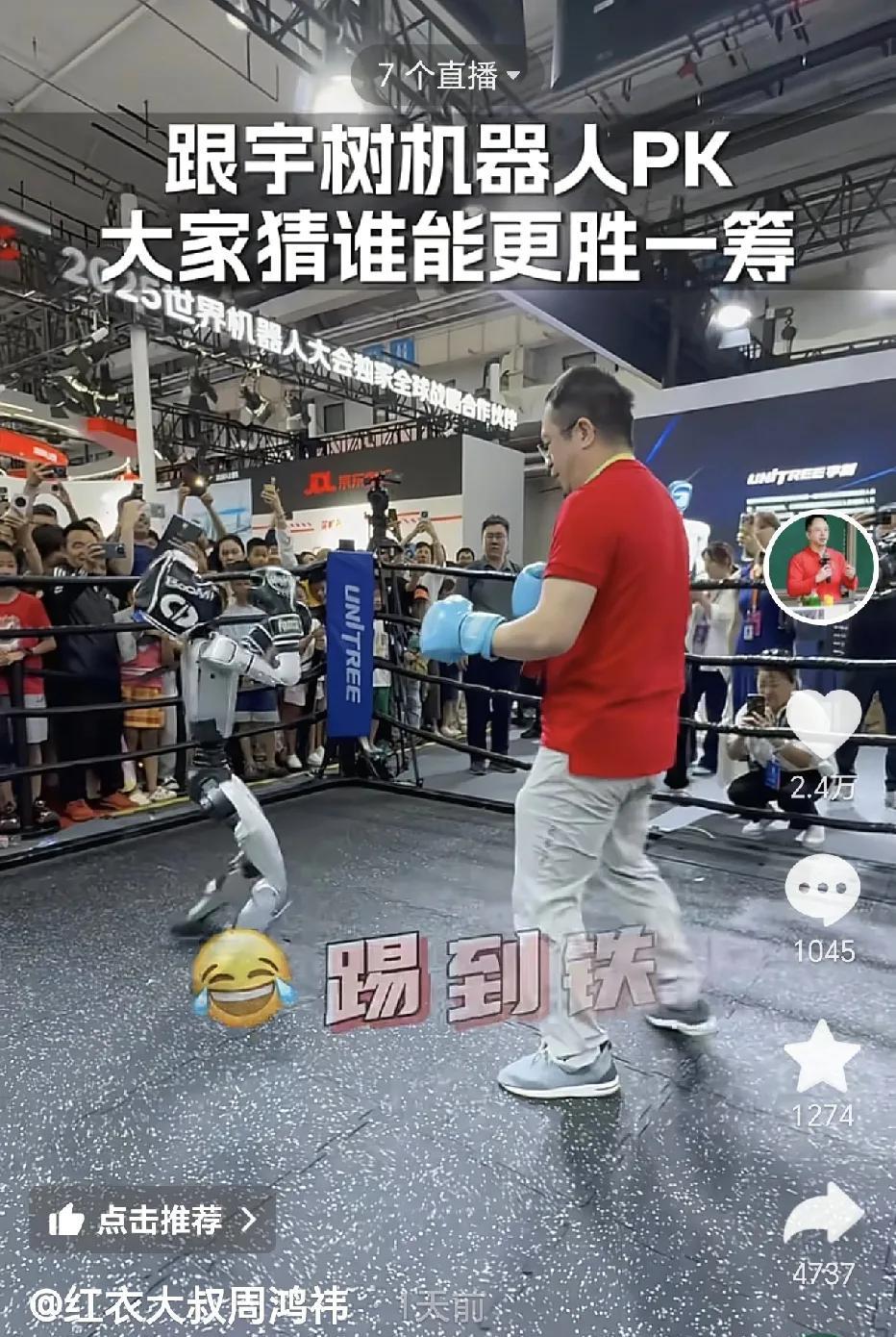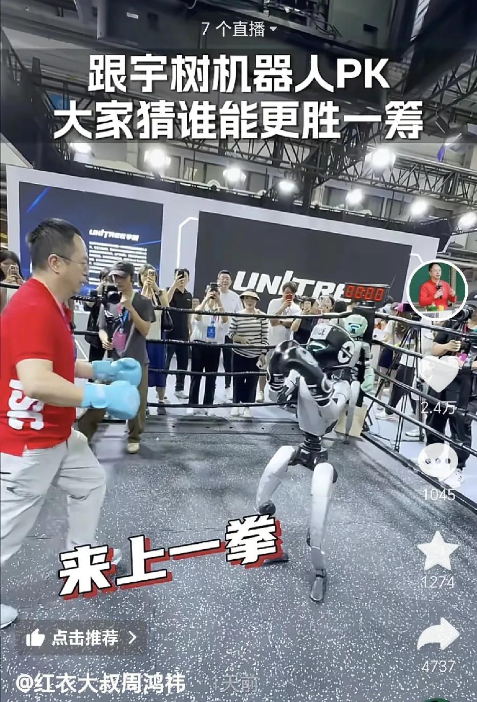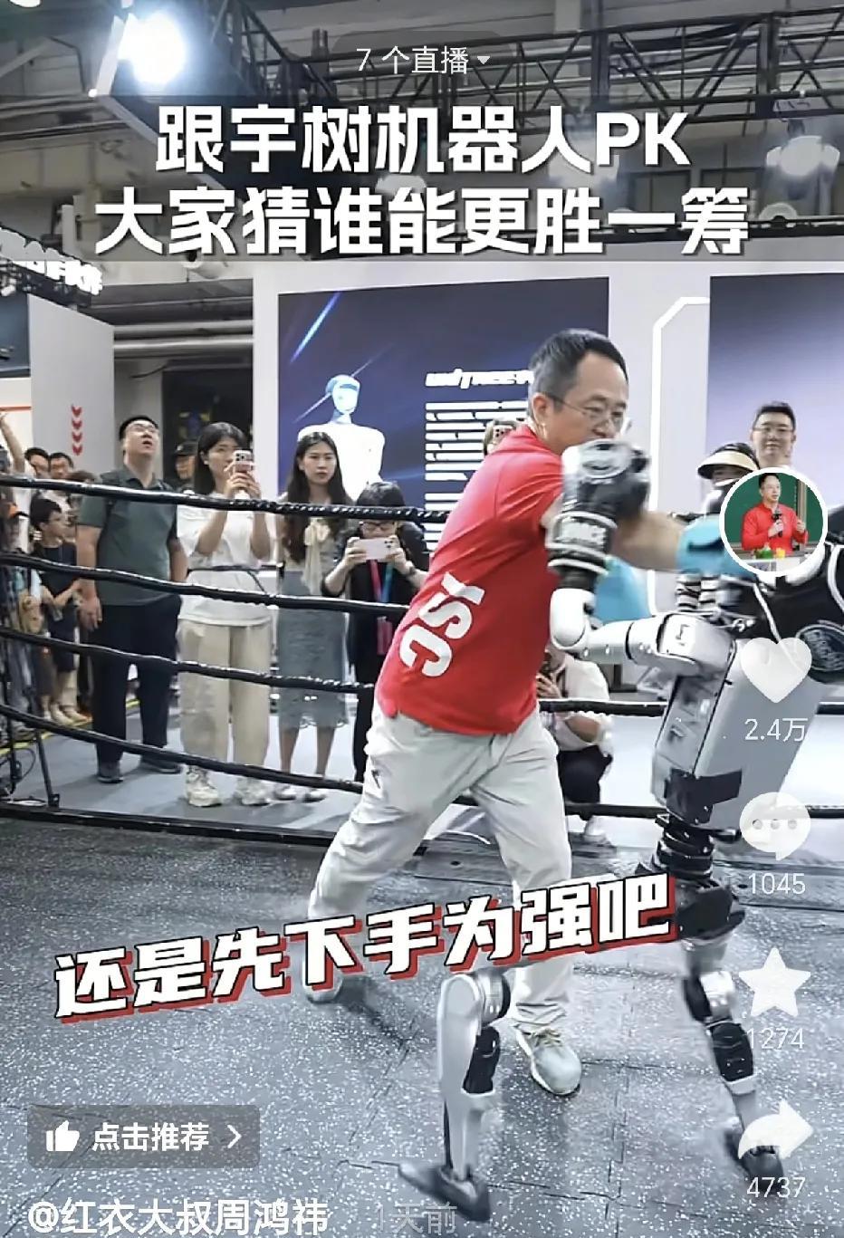 不敢想象,机器人也能参与格斗打斗了。 这次宇树科技开发的机器人,可以说智能化程度高,几乎模仿了一个人的行为来的,而且手脚灵活度高。 360红衣教主,为了体验这个机器人科技感,也带上拳套,开始KO机器人了。 可以说科技在进步,连机器人都可以给你提供情绪价值,还担心无聊没伴吗?来找机器人过下两招吧。[尬笑]