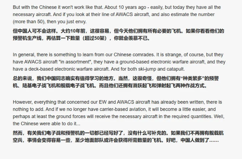 俄军事专家有点酸:中国20年造50架预警机+电磁弹射航母,我们只剩无可救药的“库兹涅佐夫”