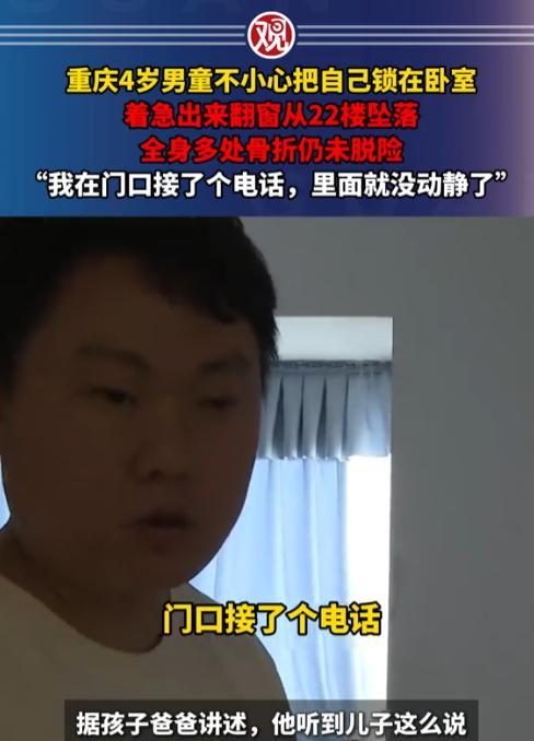 "爸爸,我从窗子翻出去就能出去了!" 重庆某高档小区22楼,4岁半的冉冉奶声奶气的这句话,让门外的父母瞬间血液凝固。此刻,这个天真的孩子正踩着小板凳,小手已经推开了卧室的纱窗,半个身子探出了窗外,下方是70米高的悬空! 这句天真烂漫的话语,成了张先生一家永远的梦魇。 "就转身接个电话的功夫..."母亲李女士回忆起那个下午,双手仍在不住颤抖。主卧的老式门锁因年久失修突然卡死,将两个孩子关在了里面。1岁的妹妹立刻嚎啕大哭,而更让人揪心的是冉冉的反应。 监控录像记录下了那个令人窒息的时刻:聪明的冉冉先是试图用玩具钥匙开门,失败后竟然搬来了平时洗手用的小板凳。他熟练地踩上去,小手推开了那扇的窗户。70米的高空,风呼呼地灌进来,吹动着他额前的碎发。 防护栏的空隙较宽,冉冉瘦小的身子,恰好能从中间挤过去! "我们听见他在数数,就像平时玩捉迷藏那样。"父亲张先生用身体拼命撞击着房门,声音里带着哭腔,"然后就是'砰'的一声闷响..." 等消防员破门而入时,一切都晚了。窗户大开着,小板凳倒在地上,只剩下1岁的妹妹坐在床边哇哇大哭。22楼下的绿化带里,冉冉小小的身体静静地躺着,鲜血慢慢渗入泥土。 急救车呼啸而至,但奇迹没有发生。颅骨骨折、多脏器破裂、脊柱严重损伤...医生们拼尽全力,也只能暂时保住这个幼小的生命。重症监护室外,李女士瘫坐在地上,一遍遍重复着:"都是我不好,都是我不好..." 这个曾经充满欢声笑语的家,从此坠入了无底深渊。主卧的窗户被永久封死,冉冉的玩具整齐地摆在原地,却再也不会有人玩它们。夫妻俩都患上了严重的创伤后应激,尤其是李女士,每次听到小孩的笑声都会崩溃大哭。 而最令人心碎的是,躺在病床上的冉冉,仍没有度过危险期。医生坦言,即便扛过这段时间,他也将面临终身瘫痪的可能。那个曾经活泼好动,喜欢在客厅里跑来跑去的小男孩,现在只能躺在病床上维持生命。 这件事给所有家长敲响了警钟:儿童安全不容丝毫侥幸。事后调查显示,如果当时窗户防护严谨,如果门锁能及时更换,如果...可惜人生没有如果。 现在,张先生一家每天都在悔恨中度过,而这样的悲剧,还在无数家庭不断重演。 最后,您怎么看呢? 信息来源: 光明网|4岁男童从22楼坠落生命垂危,父亲:孩子意外把自己反锁卧室,着急出来翻窗坠落 文|知又 编辑|南风意史