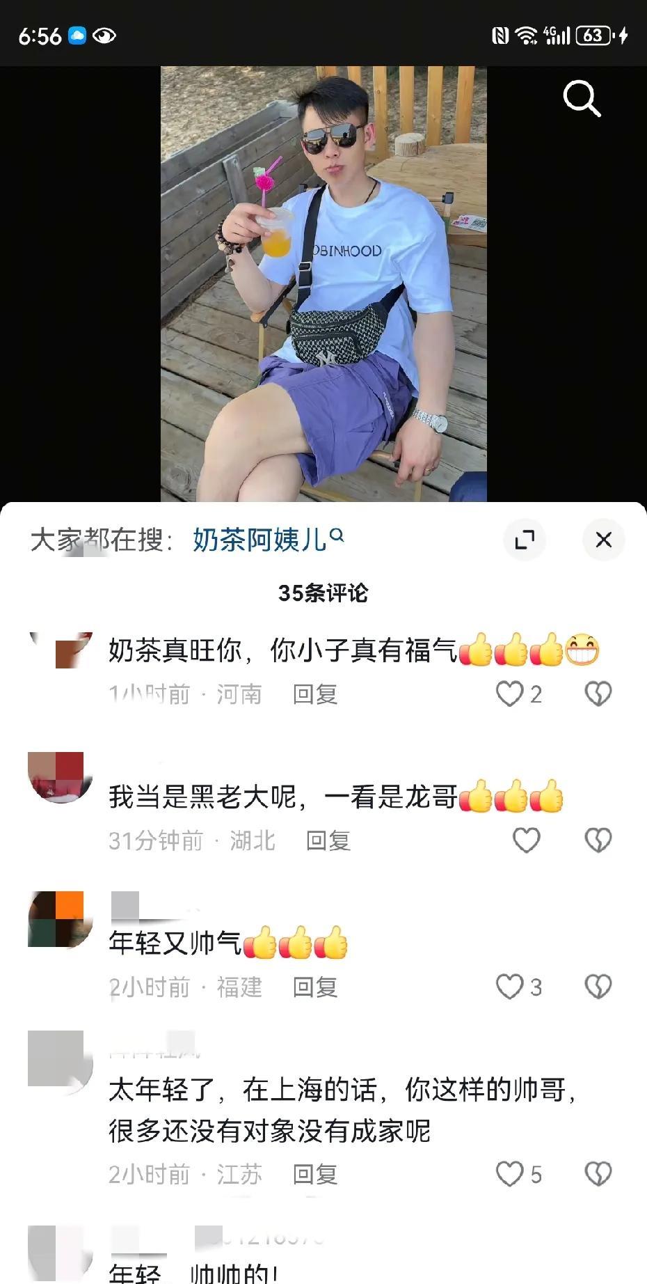 此刻龙哥肯定心情特好,晒晒他的帅照。 看不出他们是在哪里度假,旁边有飞哥和奶总的声音。墨镜一戴,奶茶一喝,二郎腿一搭,一手名表,一手佛珠,评论区留言全是夸他帅气又酷炫,得瑟完了。 龙哥现在算是人生赢家,由于长得帅,本来穷得上无片瓦,下无寸土,租住在一间破旧门面房里。凭颜值找了个富婆,几年时间,儿女双全,豪宅几套,豪车几辆,存款千万,家里保姆阿姨用上。蓦然回首,发现自己才不到36岁,自己心理年龄感觉只有18岁,年龄不大,却已经到达人生巅峰时期,不洋盘一下都对不起自己。 男人四十一枝花,他现在还才只是个花骨朵儿,奶总还把他拍得那么完美那么帅,不担心他被更有钱的富婆截胡吗?