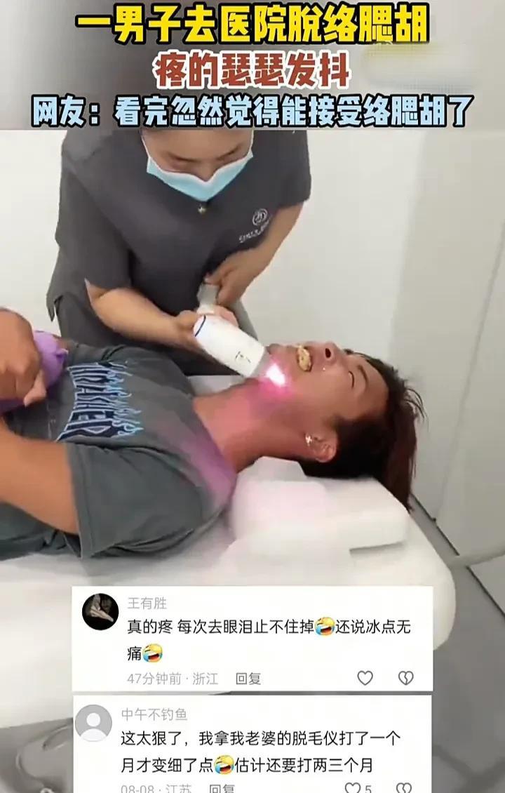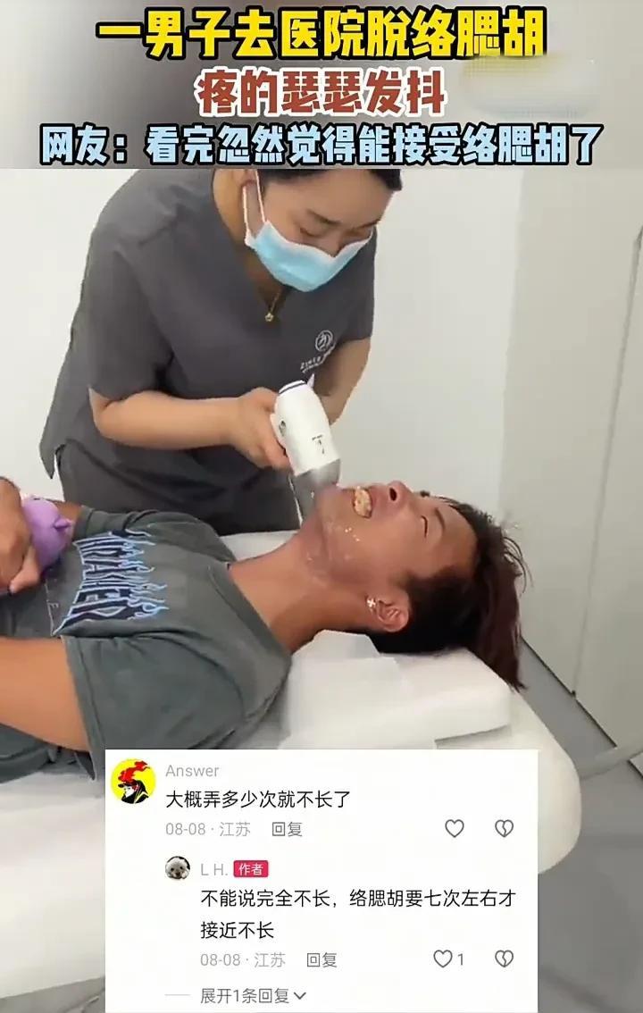 隔着屏幕都能感受到这名男子的痛!近日,江苏一名男子去医院脱络腮胡,虽然事先已经有