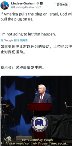 评几句:以色列和美国,究竟谁是爸爸,谁是儿子,一目了然了。依照林赛·格雷厄姆的逻辑,美国在高调倡导 LGBT 权益之际,都没有遭到上帝的遗弃,可一旦对以色列的援助止步,美国便将沦为上帝的弃子。在林赛·格雷厄姆的世界里,以色列的地位甚至超越了上帝,堪称至高无上的存在。