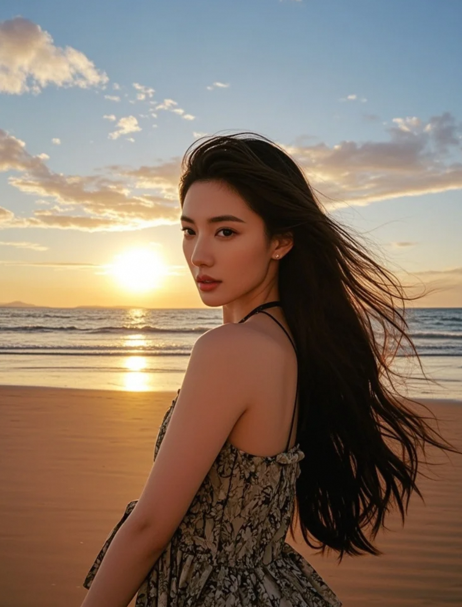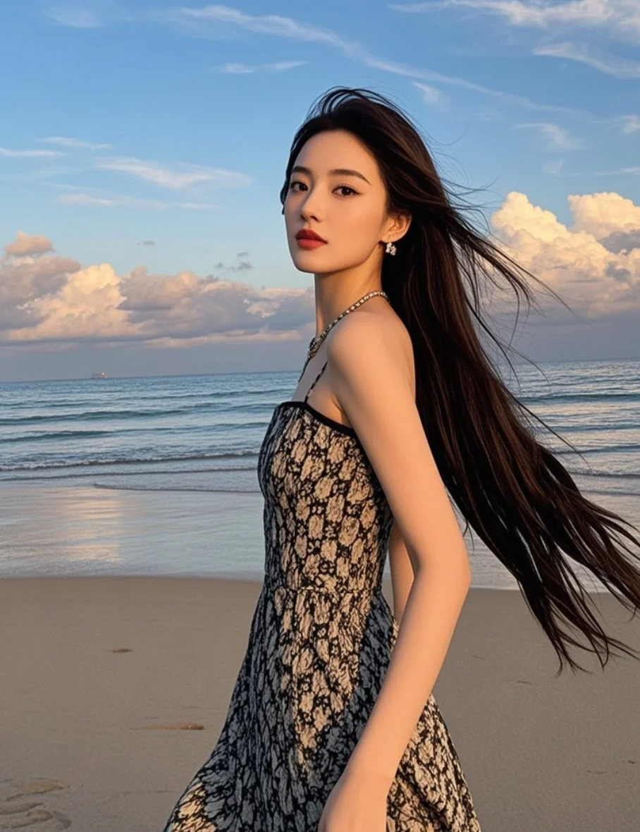 海风吻长发,裙摆轻扬,她是海边最动人的风景
