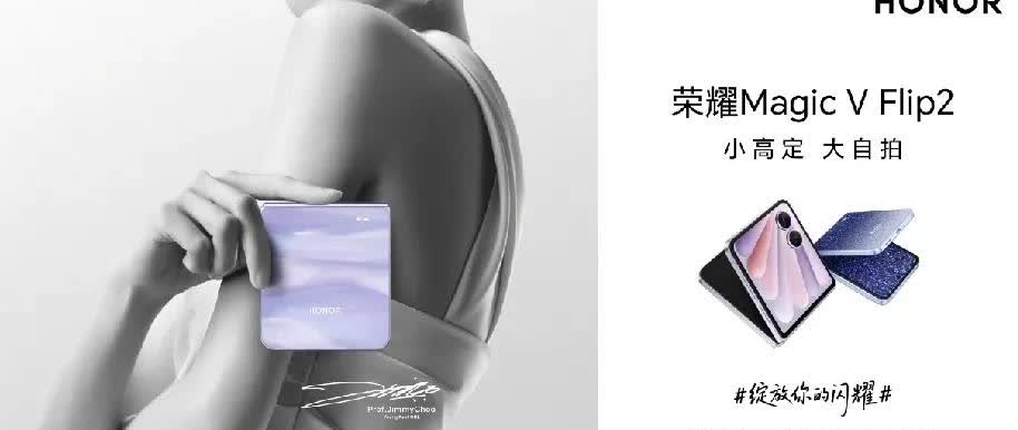 从好看、好拍到耐用,荣耀Magic V Flip2 这次把小折叠的体验天花板顶高了! 荣耀再次联手高奢品牌Jimmy Choo!这次的设计更惊艳,听说用了独特的微晶网布材质和丝绸渐变中框,铰链还有独特的logo,拿在手里就是一件时尚单品。 小机身塞进了2亿像素大底主摄和小折叠最大的电池!在小折叠里绝对是独一档级别。 上一代售价4999元起,荣耀Magic V Flip2确定8月 21日发布,售价会是多少呢? Magic V Flip2 官宣