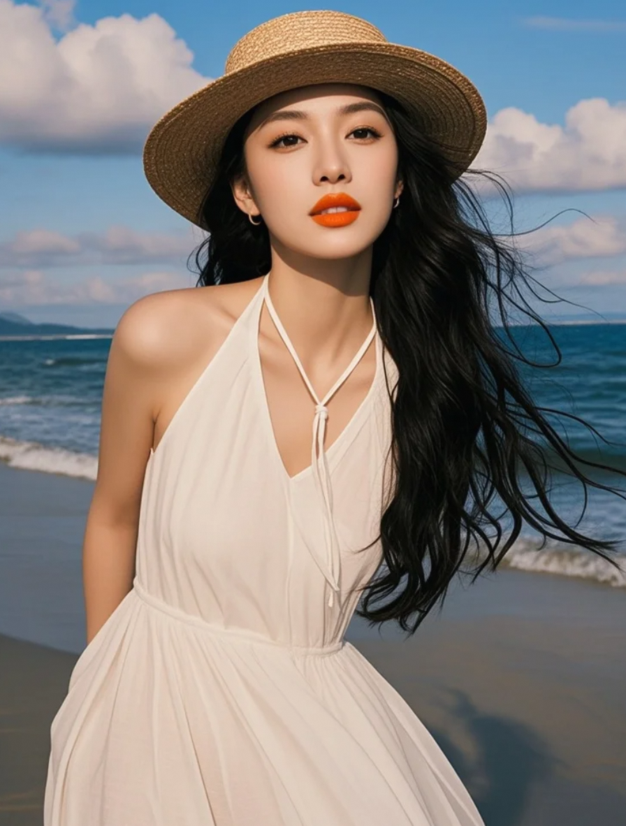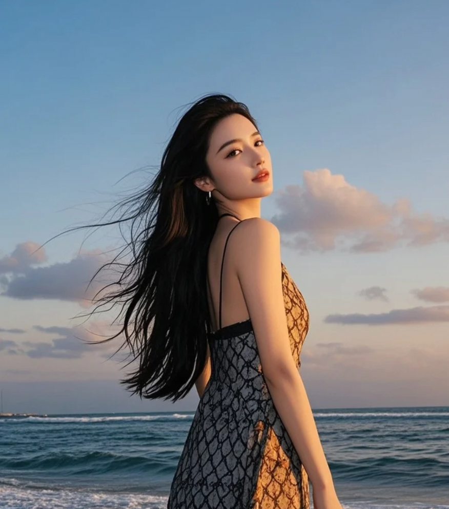 海风吻长发,裙摆轻扬,她是海边最动人的风景