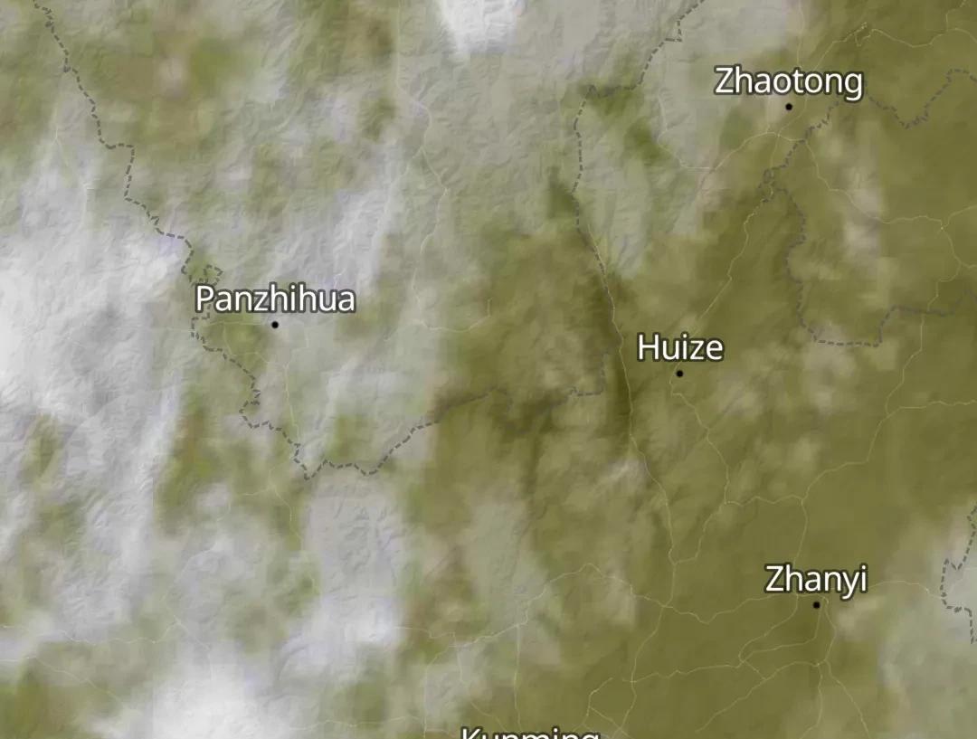 从今天晚上的最新卫星云图上来看,云南楚雄、昆明、昭通一带为局部分散性云层,曲靖一