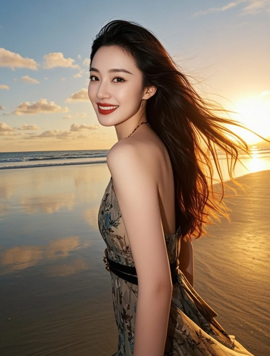 明艳唇色,如落日熔金,点燃了海岸的黄昏