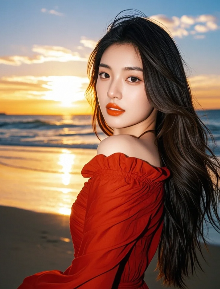 明艳唇色,如落日熔金,点燃了海岸的黄昏