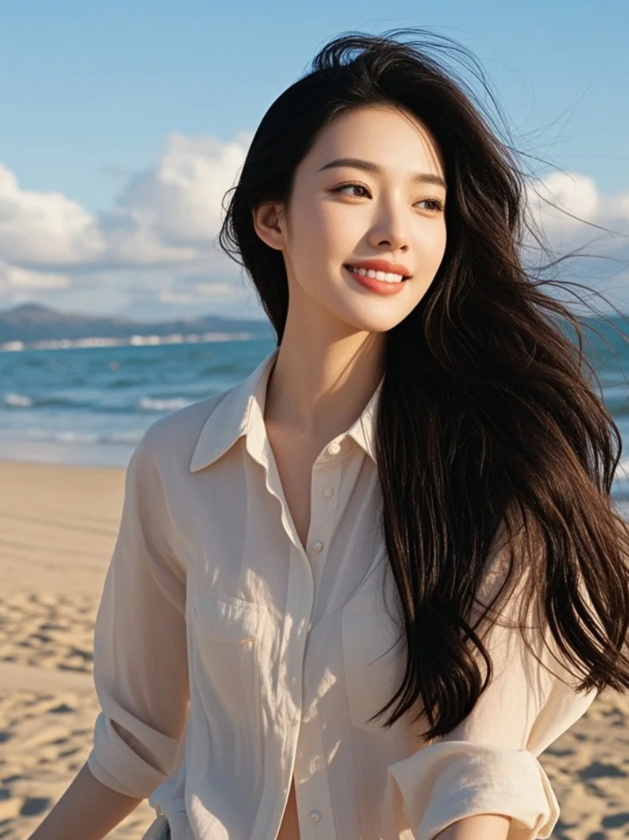 长发掠过海风,留下心动痕迹