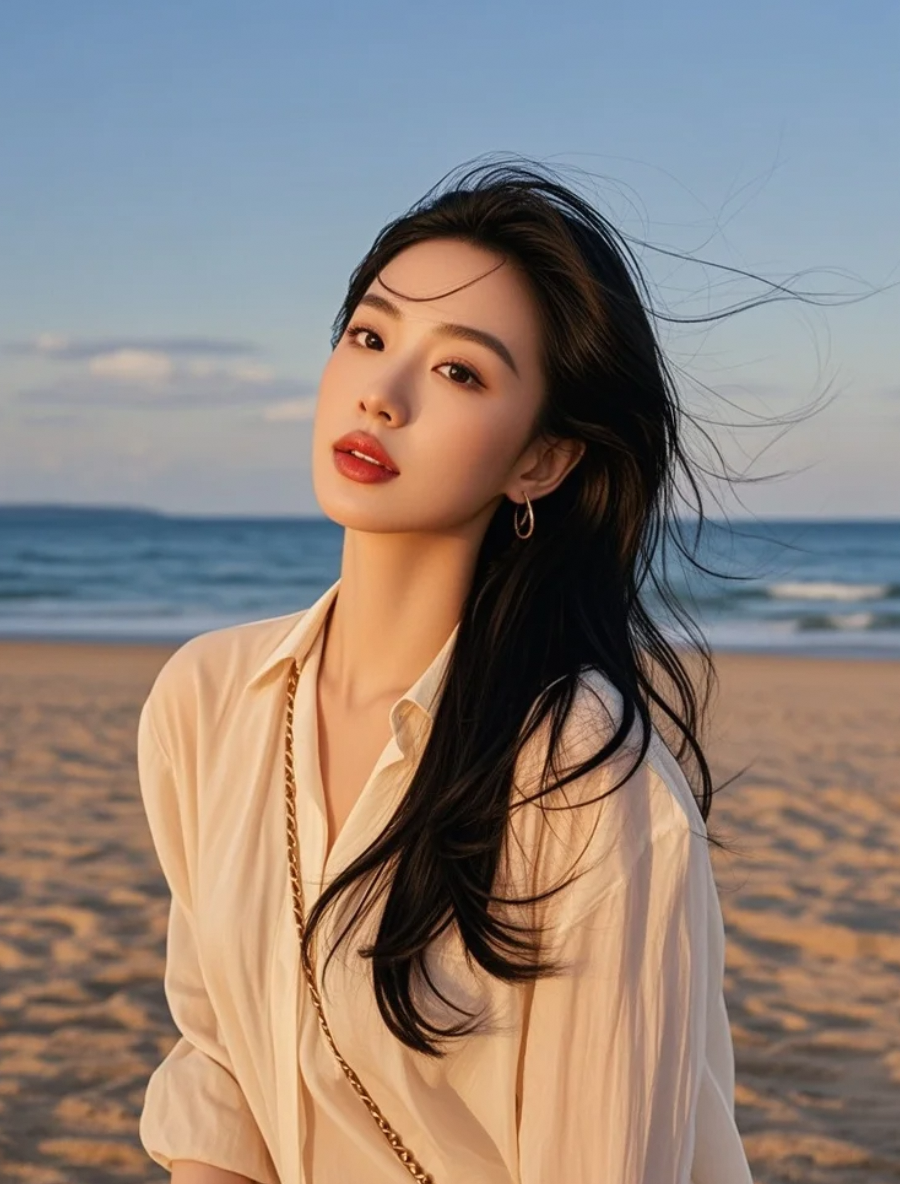 精致妆容搭配自然海风,刚柔并济的和谐美