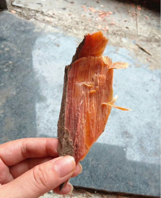 松明,如果松树枝生病或者有虫害松树就会在树枝与主干连接处分泌打量油脂,阻隔虫害或者病害。在死亡的枝干处可能会找到,根部也会有