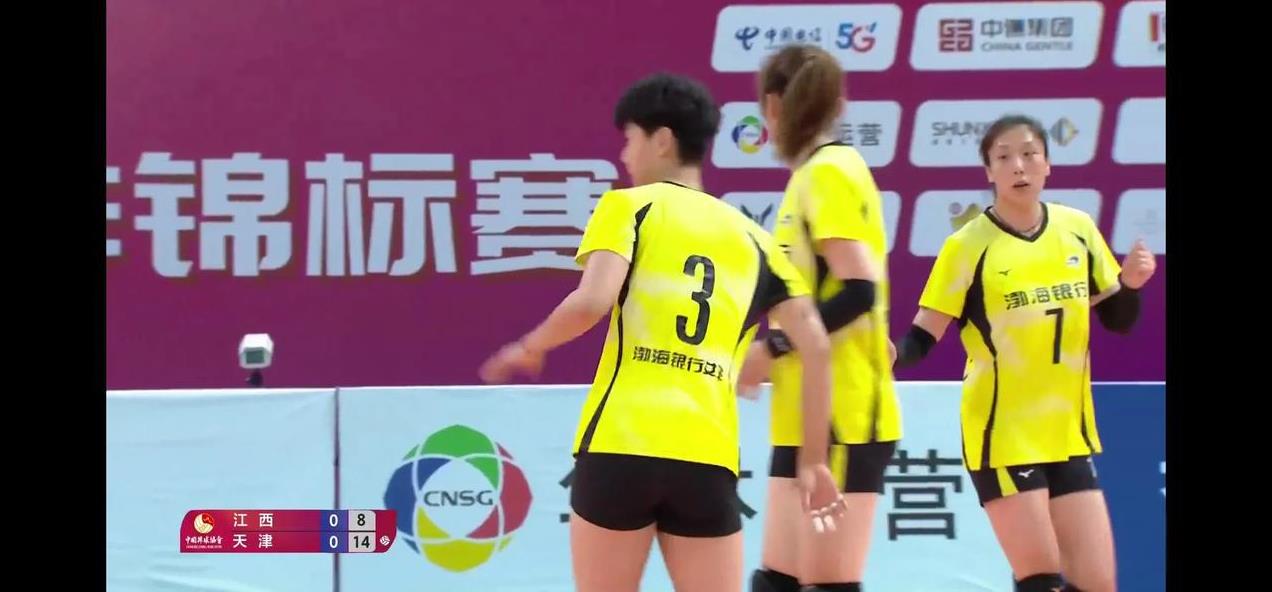 女排全锦赛天津对江西,天津队再派卞敏璇首发,杨艺刘美君主攻,雪藏王艺竹,第一局天