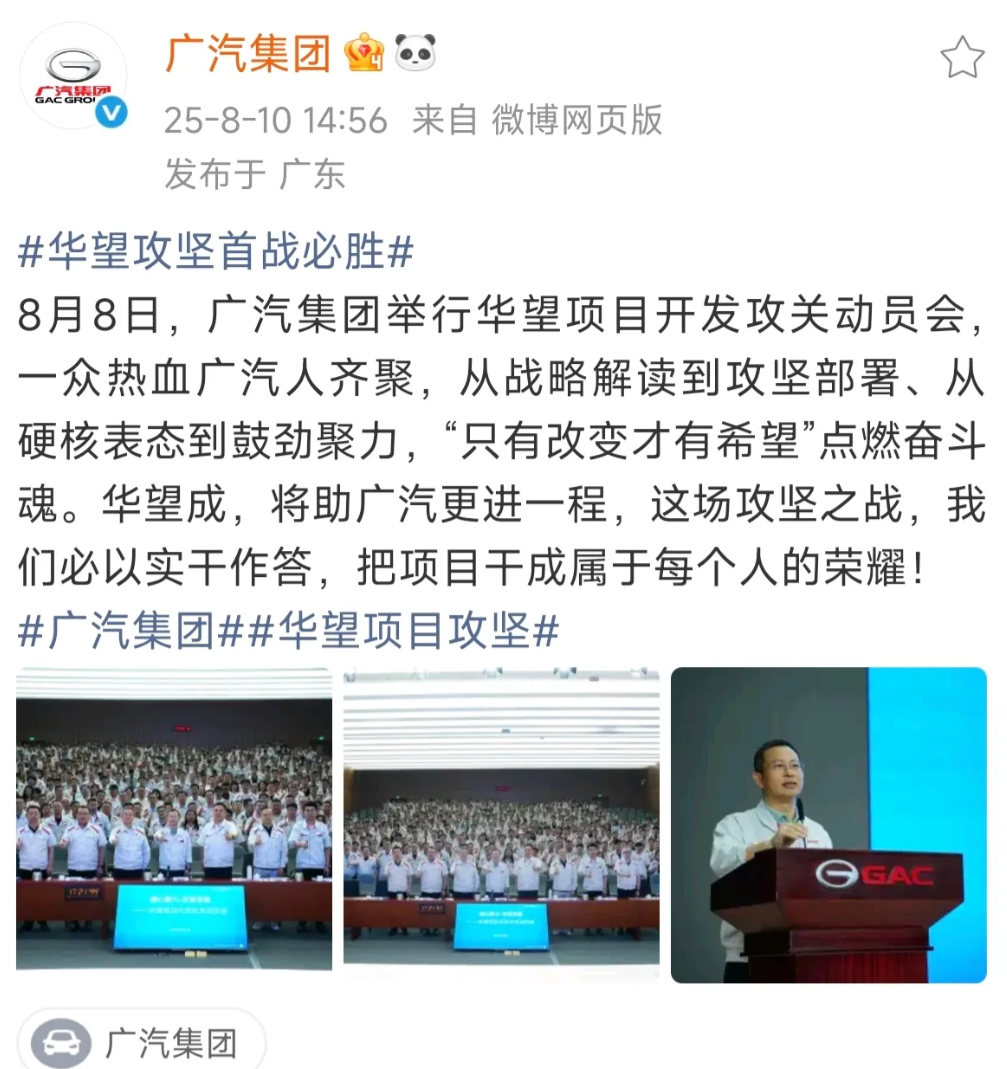 近日广汽集团举行华望汽车项目开发公关动员会,并且豪言要把以实干作答,势必把这个项目做成每个人的荣耀。