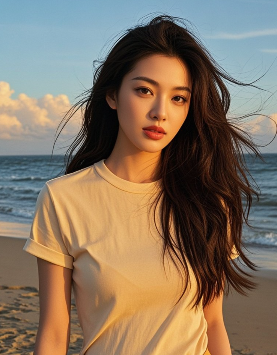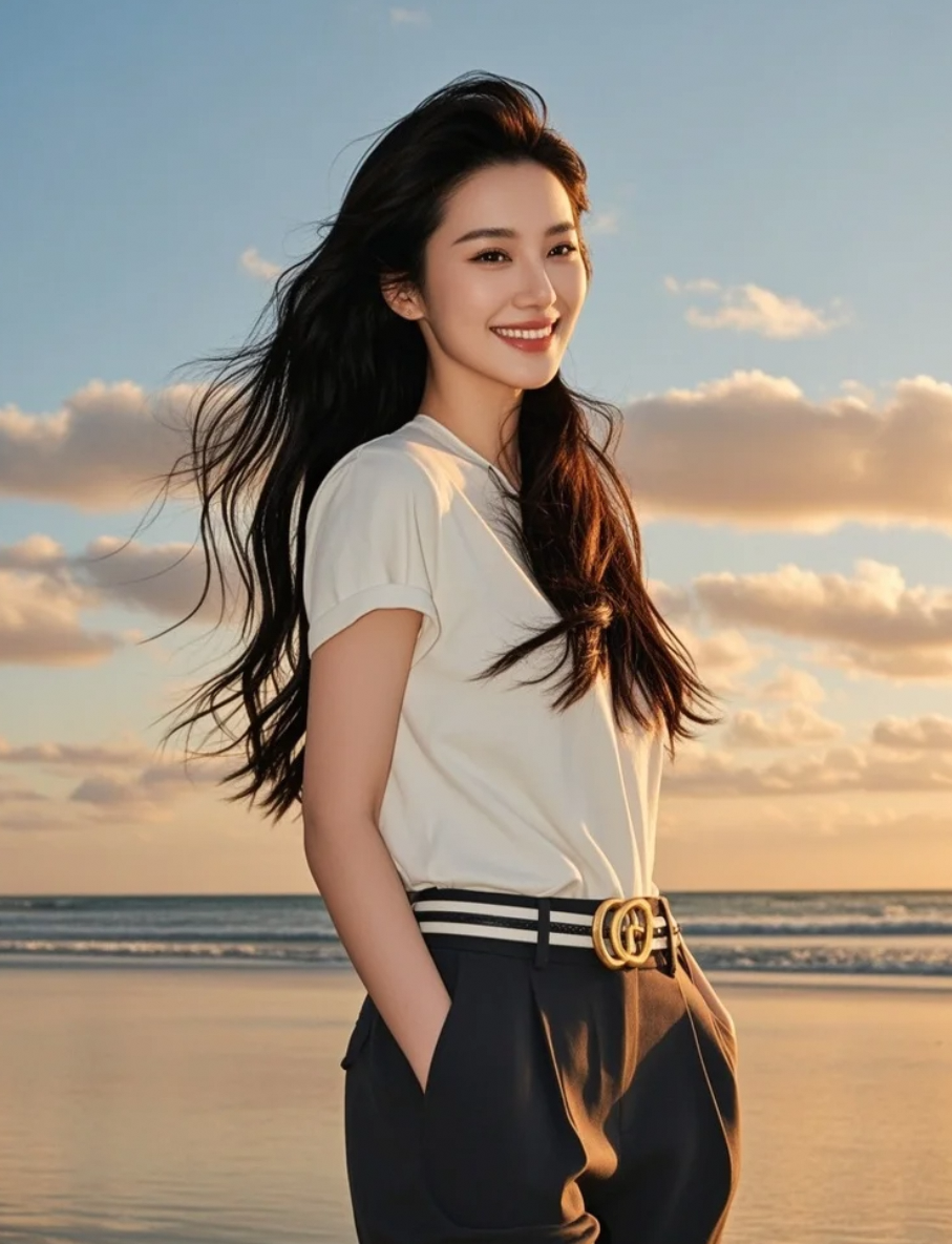 海边长发飘飘,是活力与优雅的完美平衡