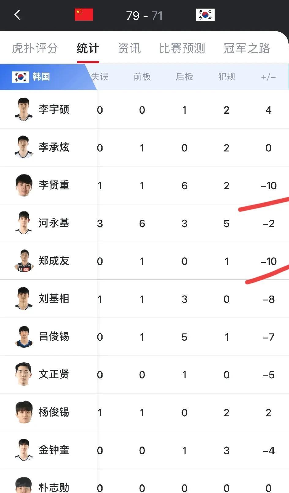 周琦咪咕解说真敢说啊!他说正负值说明很多问题,球员很欣赏高诗岩;没提胡明轩,他跟韩国队比赛,我无语了,打印度17分,打韩国0分,打沙特2分,赵睿赛后发布会上哽咽,令人动容,在关键比赛生死时刻,必须要有人挺身而出,假如不能得分,起码要像高诗岩一样在防守端不遗余力!恕我直言,胡明轩±值-11,不只是中国队正负值最低,是全场正负值最低,也包括韩国队。