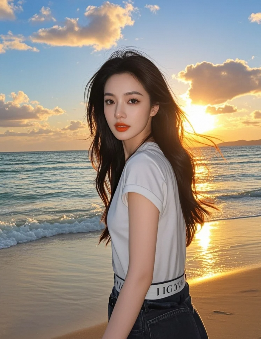 明艳唇色,如落日熔金,点燃了海岸的黄昏