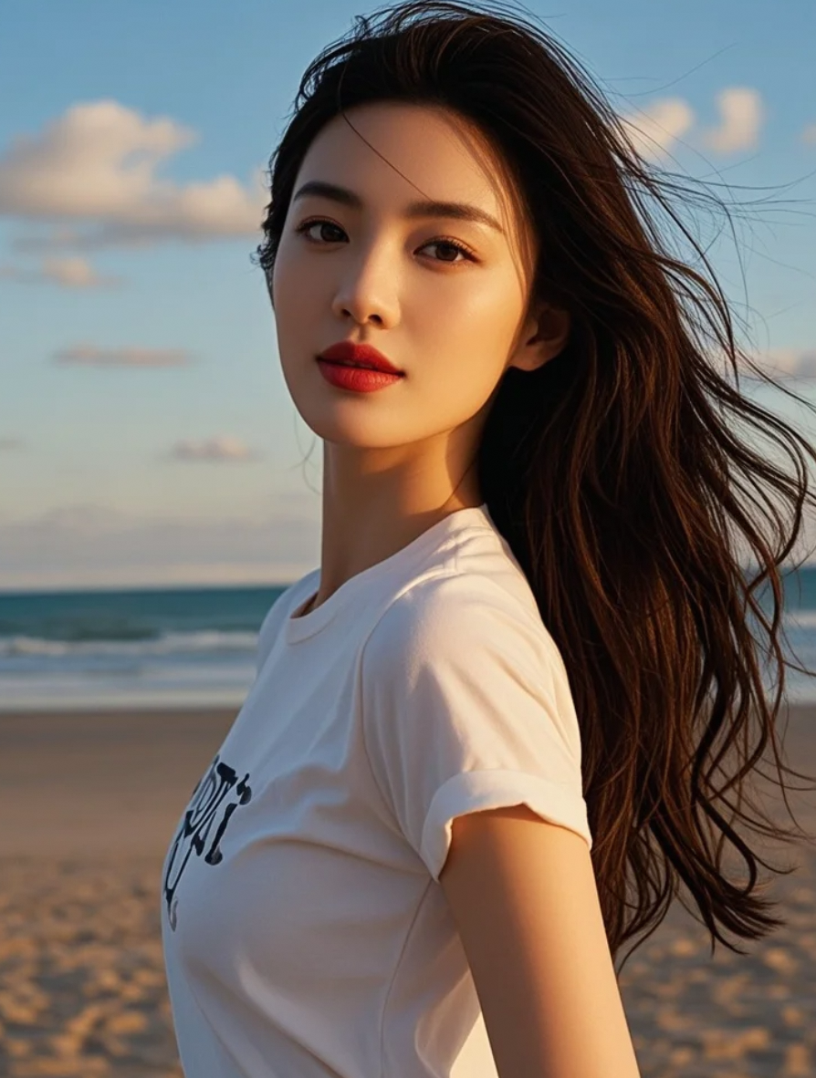明艳唇色,如落日熔金,点燃了海岸的黄昏