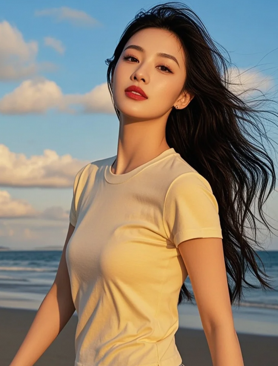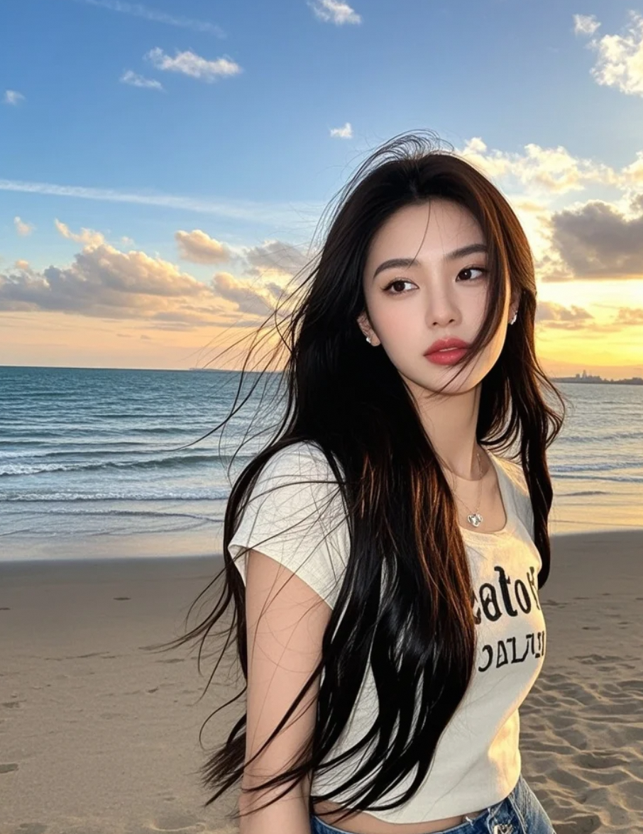 海边长发飘飘,是活力与优雅的完美平衡
