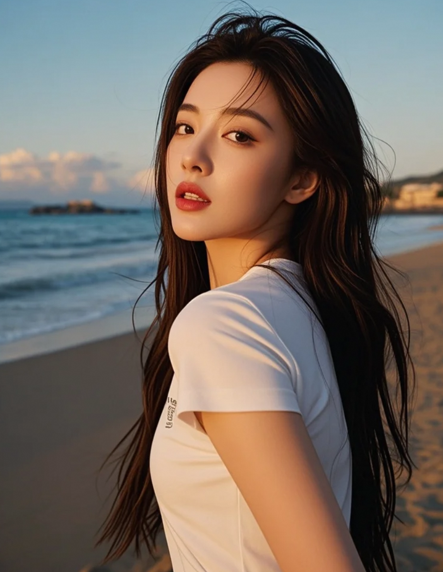 海边长发飘飘,是活力与优雅的完美平衡