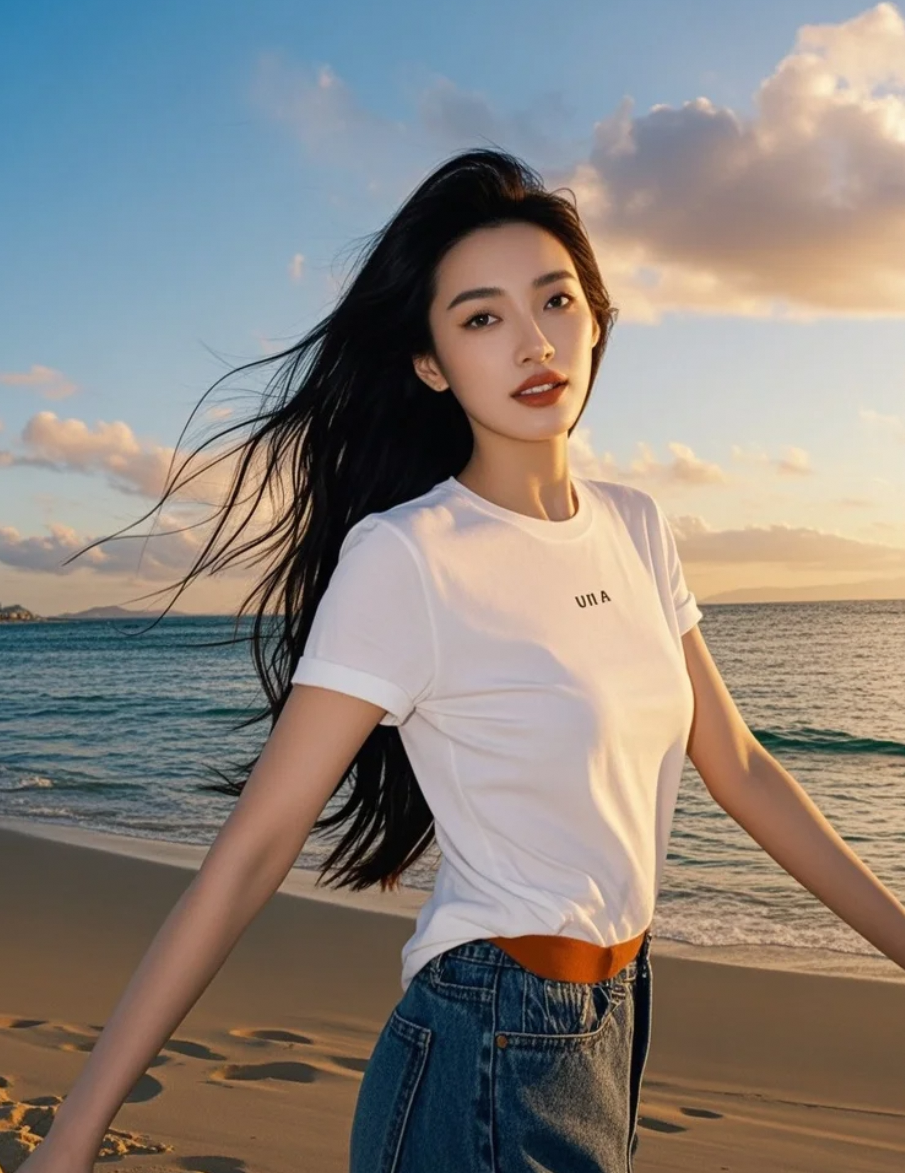 裙摆与长发共舞,演绎海边的轻盈芭蕾