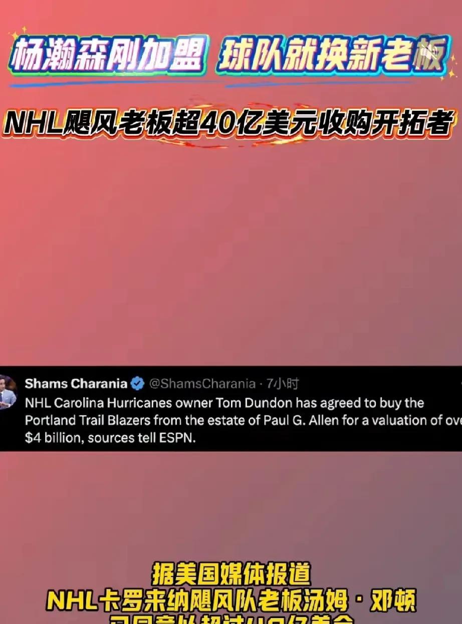 杨瀚森换老板了!对杨瀚森是个考验! 近日最新消息,开拓者队更换了篮板,保罗艾伦已经同意以40以美元的价格卖给了新任老板汤姆邓顿,这对于杨瀚森来说是的不小的考验! 前老板对于杨瀚森的喜欢溢于言表,每次采访谈到杨瀚森都是赞美,对杨瀚森来说是非常幸运的事。但是,球队更换了老板,新老板能不能喜欢杨瀚森还不好说,如果不那么喜欢杨瀚森那么杨瀚森在开拓者就不那么受待见了! 对杨瀚森是个不小的考验,现在只有自己打出来了,才能让新老板喜欢,得到新老板的新任这是关键。 但是,我觉得新老板也能喜欢,毕竟从商业价值来看,杨瀚森带给开拓者的可不是一星半点!