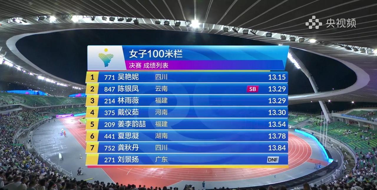 #吴艳妮#13.15秒吴艳妮女子100米栏夺冠!广东刘景扬拼得很凶,力争身位领