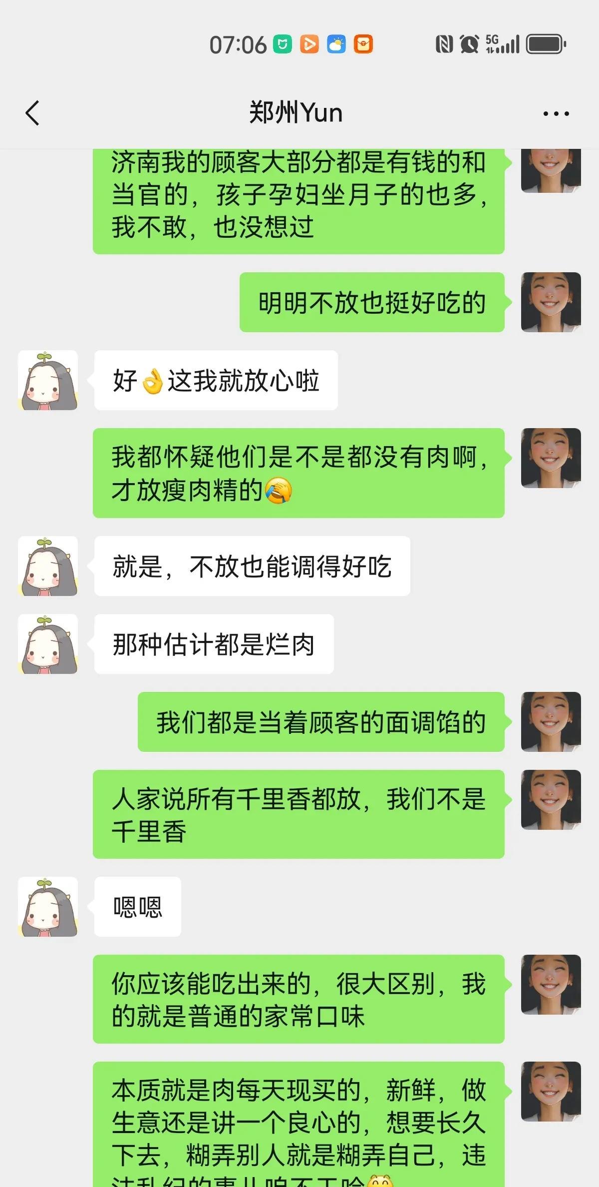 一大早就被肉精膏的新闻给气到了,这不是丧良心吗! 河南郑州的一家馄饨店被查出来用肉精膏,还大言不惭的说这是行业规则,自己用了还说行业规则,把整个做馄饨的所有人都试图拉入他的矩阵里,避重就轻,他不活了也不让别人好过! 自己做丧良心的事情以为所有人都丧良心呢,现在肉价多便宜啊,还用瘦肉精,我细思极恐,那到底用的什么肉? 究竟是不是用的肉? 是肉为什么要加肉精膏? 明明肉价都这么便宜了为什么还要掺假,他到底要赚多少钱才足够! 贪心不足蛇吞象! 我气的喘不过气来,昨天晚上睡觉前顾客就给我发了这个,我没在意就睡了,今天老顾客又给我发了这个,是郑州的,开玩笑,那可是事发地,她当然心慌了,孩子也喜欢吃。 我细心解释,发誓。 为什么发誓,因为我没做过,随便发誓,因为我知道报应不会摊到我身上。 我有喜馄饨再次保证,馄饨馅里绝无任何添加剂防腐剂,没有肉精膏,就是家庭做法家庭口味,无论肉价多少味道始终从一而终,肉的源头只用金锣专卖店的后腿肉,从无一天搞过虚假! 如果我有喜馄饨有肉精膏,就现在就s,店立马倒闭,出门被车撞s,喝水呛s,荒野暴尸,尸骨无存! 我第一次做生意,幸得许多顾客照顾认才走到今天,不是一个肉精膏能打倒的! 真心不可辜负! 情谊不可辜负! 良心不可辜负! 顾客在我这里要的就是一个放心,我给的就是一个放心,我还是那句话,糊弄别人就是糊弄自己! 看,千万不要做坏事,回旋镖总会扎到自己身上! 我步子缓慢但是走的稳,无愧于心,吃的好睡的好,希望每个丧良心的人都会得到报应,也希望每个脚踏实地的人都会有合乎情理的因果。 人,真的一定要善良,每个人都有发现善良的眼睛,因为恶意一旦流露,就会有人看到的。