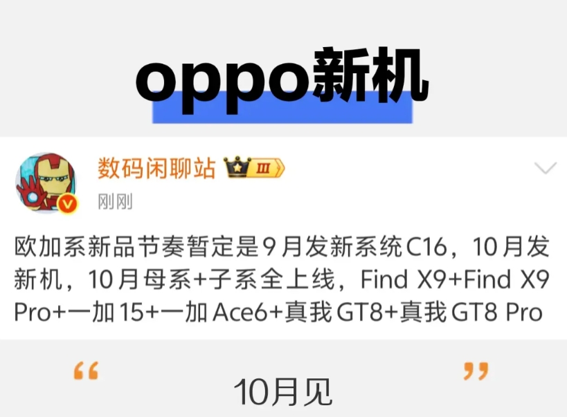 oppo也要发力了,新品节奏加快,除了9月份的ColorOS 16新系统外,还有六款新品手机登场!有Find X9系列、一加15系列、Ace6系列(今年没有pro了)、真我GT8/Pro系列,感觉像下饺子一样,这么多新机挺好的,是机海战术吗?