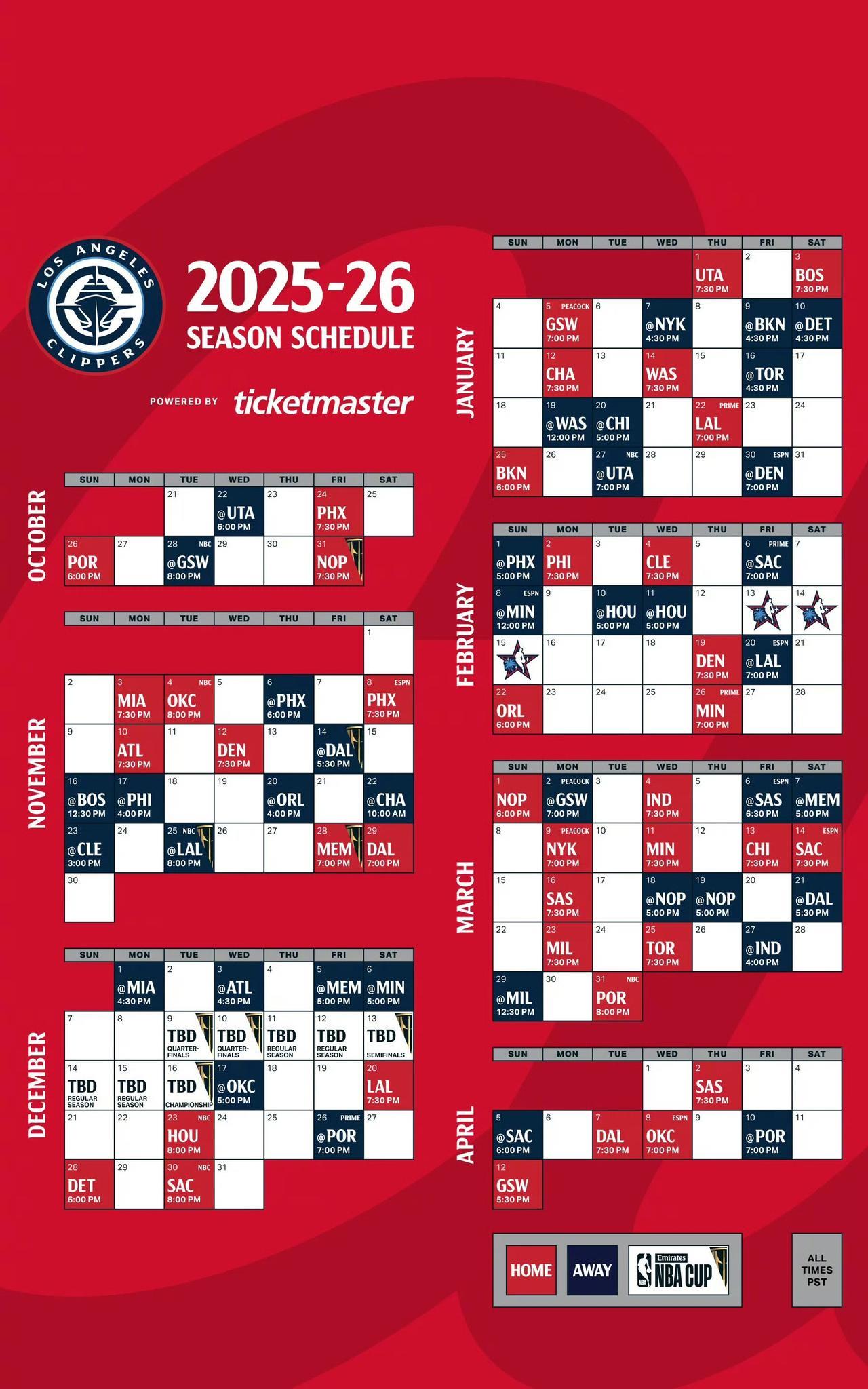 独行侠、开拓者、快船新赛季赛程安排!!! 独行侠新赛季的赛程也公布了,新赛季独行