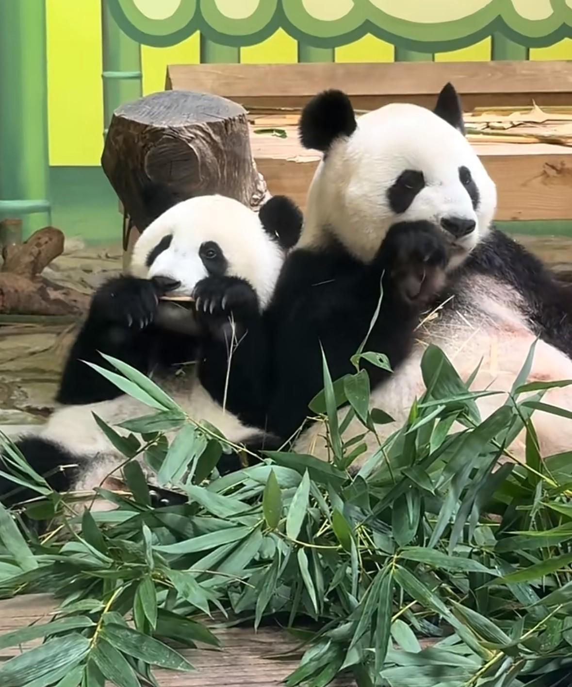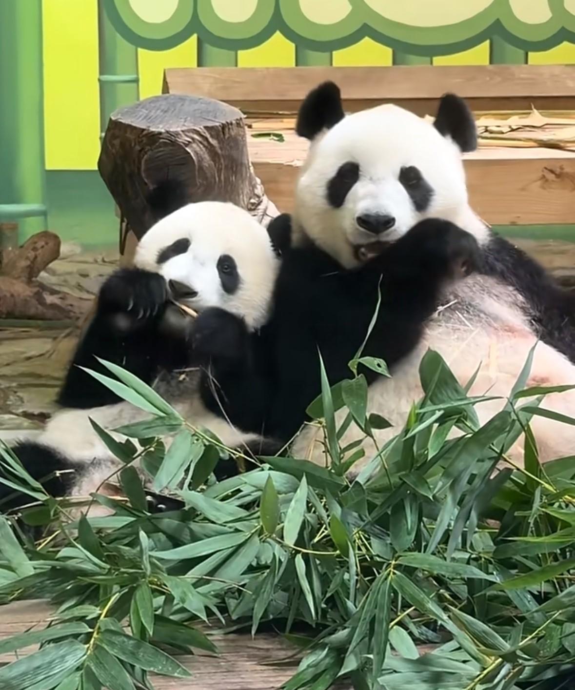大熊猫“妹猪”和妈妈“萌萌”真是可爱极了! 妹猪就好似一个小白面馒头[大笑] “妹猪”紧紧地依偎在妈妈身边,随后它们在吃东西。 小皇帝开始学着吃竹子了,渐渐长大了 真希望时间能过得慢一些,这样妈妈就能多陪伴妹猪一会儿了 #晒图笔记大赛#