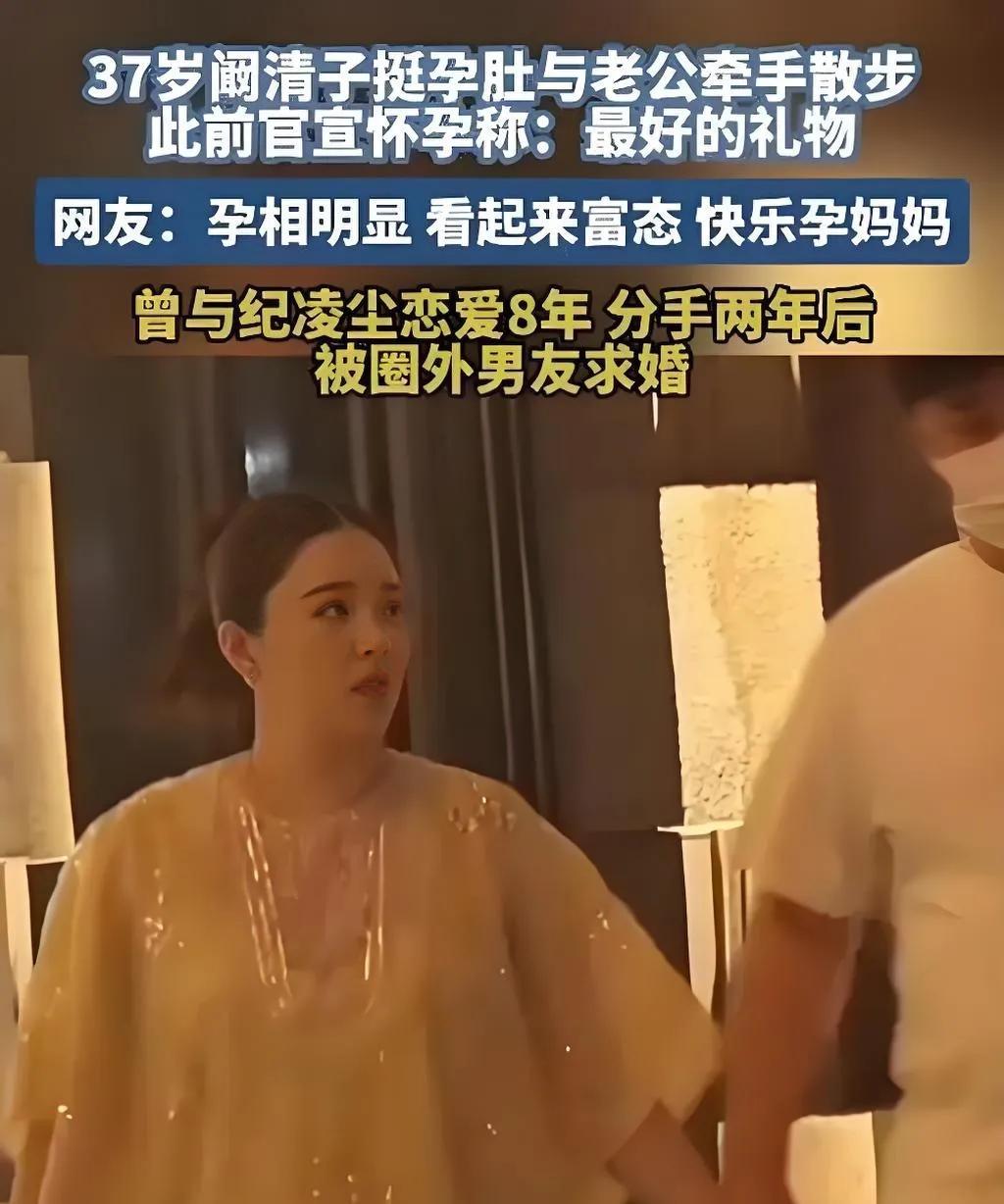 2025年8月13日,有媒体拍到阚清子与老公甜蜜出行,她身着宽松衣物,孕肚明显,