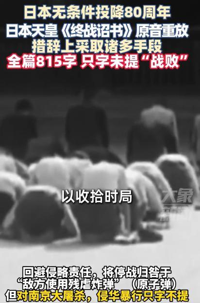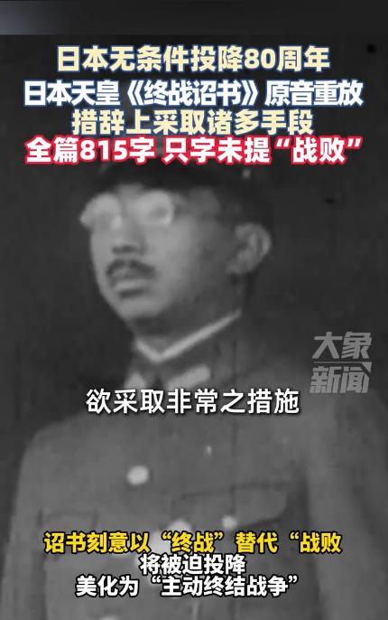日本天皇《终战诏书》原音重放,只字未提“战败”! 广播一响,七十多年前的声音穿透收音机,像是从历史深处推开了一道门。熟悉日语的人很快发现,诏书里没有“战败”两个字。那种刻意的回避,让人忍不住追问:是出于政治算计,还是刻意塑造记忆?在这场仪式化的回放背后,隐藏着一段充满争议的往事。 原音重放当天,电视台把音频配上了当年的老照片:天皇在麦克风前,旁边站着穿制服的随员,背景是一间安静的录音室。画面看似平和,实际上背后暗潮汹涌。1945年的那一刻,日本国内局势动荡,军方强硬派不愿接受失败,政界保守派试图保住天皇制度,民间则处在信息封锁与战败传闻的夹缝中。 录音的过程发生在8月14日。这是昭和天皇第一次用录音向全国讲话。设备由NHK技术人员负责运送和调试,录制地点选在皇宫内的一个安全房间。那天的气氛紧绷,文件文字早已敲定,但每一个字都经过反复推敲——既要回应盟军的《波茨坦公告》,又要避免刺激国内反对派的情绪。 次日正午,诏书通过NHK电台播出。很多人第一次听到天皇的声音,带着浓重的宫廷腔调和复杂的语速。没有人听到“战败”这个词,取而代之的是“收拾时局”“接受联合国要求”这样的表达。这种模糊的措辞,让普通民众需要反复揣摩才能明白真正的意思。 学者指出,这种语言选择并非偶然。在当时,日本政府既要承认战争无法继续,又要维护天皇的尊严和权威。如果直接用“战败”“投降”,不仅会让军方激进派抓住理由反击,还可能在公众心理上造成剧烈震荡。于是,诏书变成了政治与语言的双重产物。 战后的历史书上,“终战”这个词被广泛使用,取代了“投降”。这种文字上的转变,延续到后来的教育和官方叙述中,形成了一种独特的历史观。国内外学者多次指出,这种说法掩盖了战争责任,也让日本社会在反思侵略历史时存在模糊地带。 在诏书录制和播放之间,还发生了一个几乎改变历史的插曲——宫城事件。8月14日夜,少壮派军官试图发动兵变,阻止诏书的广播。他们闯入皇宫,寻找录音盘,想要摧毁它,从而延续战斗。这场行动虽然短暂,却充满危险,守卫与政变者一度在宫内对峙。 政变最终被平息,录音盘得以保存。第二天的广播成为战争结束的重要标志。历史学者认为,这一事件揭示了当时日本军政之间的深层裂痕,也解释了为何诏书措辞需要如此谨慎。即便是在投降已成事实的前夜,仍有人企图逆转局势。 录音盘此后被皇室当作御物保存,几十年来很少公开。它不仅是一段历史的证据,也是政治妥协的象征。有人认为,模糊的语言为盟军接受保留天皇制提供了缓冲,让战后政局避免了彻底崩溃。 多年以后,这段原音的重放成为固定的纪念环节。电视台、博物馆、历史节目都会在终战纪念日播放,让公众在听觉上与历史相连。但这种连接带着双重感受:一方面,它是对战争结束的提醒;另一方面,它也不断暴露出历史叙述的缺口。 影视作品多次再现这一刻。电影《日本最长的一天》把录音过程、宫城事件和诏书播出前后的紧张氛围浓缩在几个镜头里。导演刻意用低光和封闭空间表现录音的秘密性,让观众感到那种背水一战的紧迫感。 社会记忆的传承也在不断变化。对老一代人来说,诏书是“战争结束”的象征;对年轻一代,它更像是一段遥远的历史素材。尤其是在学校教育中,对诏书的分析更多停留在语言表层,很少深入到其政治背景和历史责任的讨论。 历史学界在近年的研讨会上提出,重放原音不仅是纪念,还应该是反思的契机。诏书中没有的那两个字——“战败”,恰恰是对战争性质的真实描述。把它长期回避,只会让后人对历史的理解越来越模糊。 与此同时,也有保守派辩称,诏书的语言是历史条件的产物,当时的首要任务是停止战争、保护民众安全,而不是进行历史清算。这种观点在日本国内依然有一定支持度,说明历史问题在社会内部依旧存在分歧。 每年8月15日,靖国神社前的人群、东京街头的反战集会、电视机里的玉音放送,共同构成日本对终战的复杂记忆。不同人群在同一天里赋予这段原音不同意义,有人怀念,有人愤怒,也有人只是当作一次历史播放。 这段录音从未失去政治性。即便几十年过去,它依旧是检验一个国家历史态度的标尺。语言的模糊和回避,并没有让争议消失,反而在时间的推移中变得更加刺眼。 当原音再次被打开,听众不仅会去听那段声音,也会去想,为什么在最关键的时刻,有些词被刻意留白。这种留白,是当时的现实选择,也是后人必须面对的历史遗产。 这一次的重放,也许能让更多人意识到,历史的声音不只是回响在博物馆和广播里,它还会在现实政治和社会认知中,持续发出影响力。每一次播放,都是一次重新审视过去的机会,也是一次对未来的提醒。