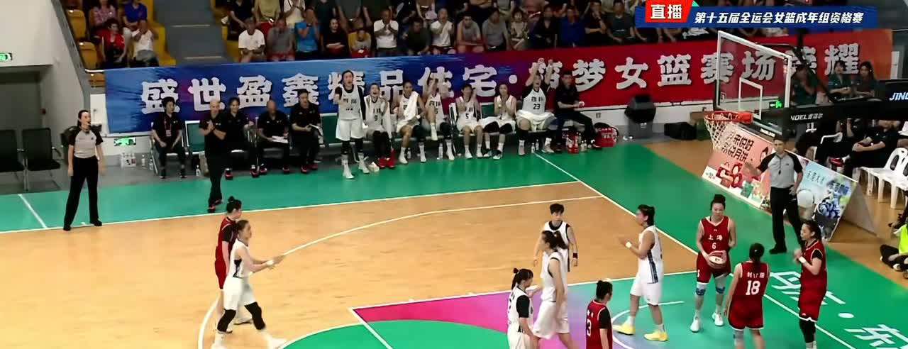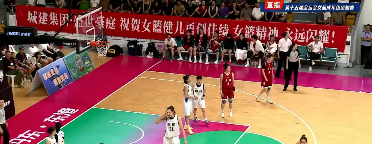 全运会女篮焦点战:四川女篮vs上海女篮,上半场结束,四川50:45上海,本场真的