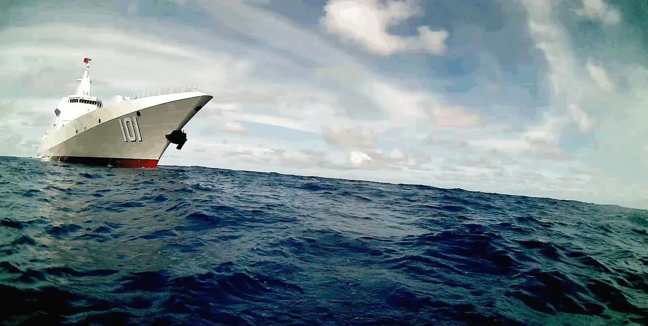 中国055驱逐舰在太平洋被美国无人艇监视跟踪,055反客为主将其逼退。美国Seasats公司向媒体披露,他们研制的无人快艇在太平洋遭遇中国055型驱逐舰,该无人艇随即对中国军舰进行了侦查拍摄,不过中国军舰很快发现了美国无人艇的意图,随后调整方向对无人艇进行逼近驱离。该公司向媒体展示了无人艇拍摄到的055驱逐舰照片。(图一)