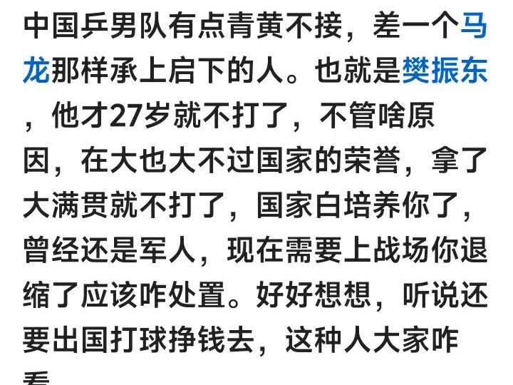 樊振东的扛旗,应是球迷的一厢情愿,他明白、其他人更明白,所以才去德甲打球,所以球