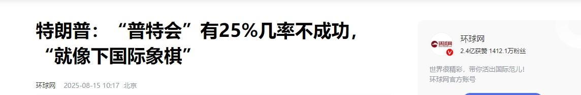 俄美会晤倒计时!14日,特朗普称与普京谈崩概率为25%:这场会谈如"下棋"。 特