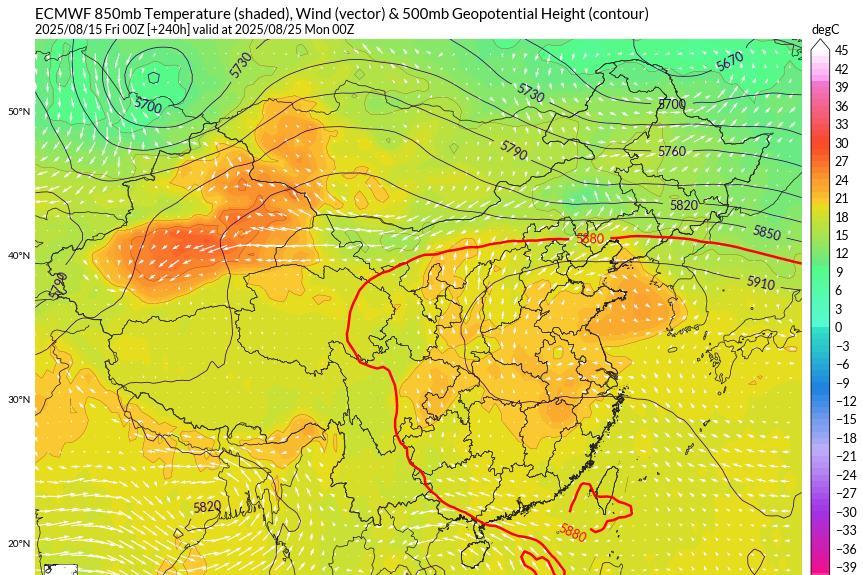 从最新的数值预报来看,本轮高温的持续时间会比较久,一直到25号副高依旧非常强大,