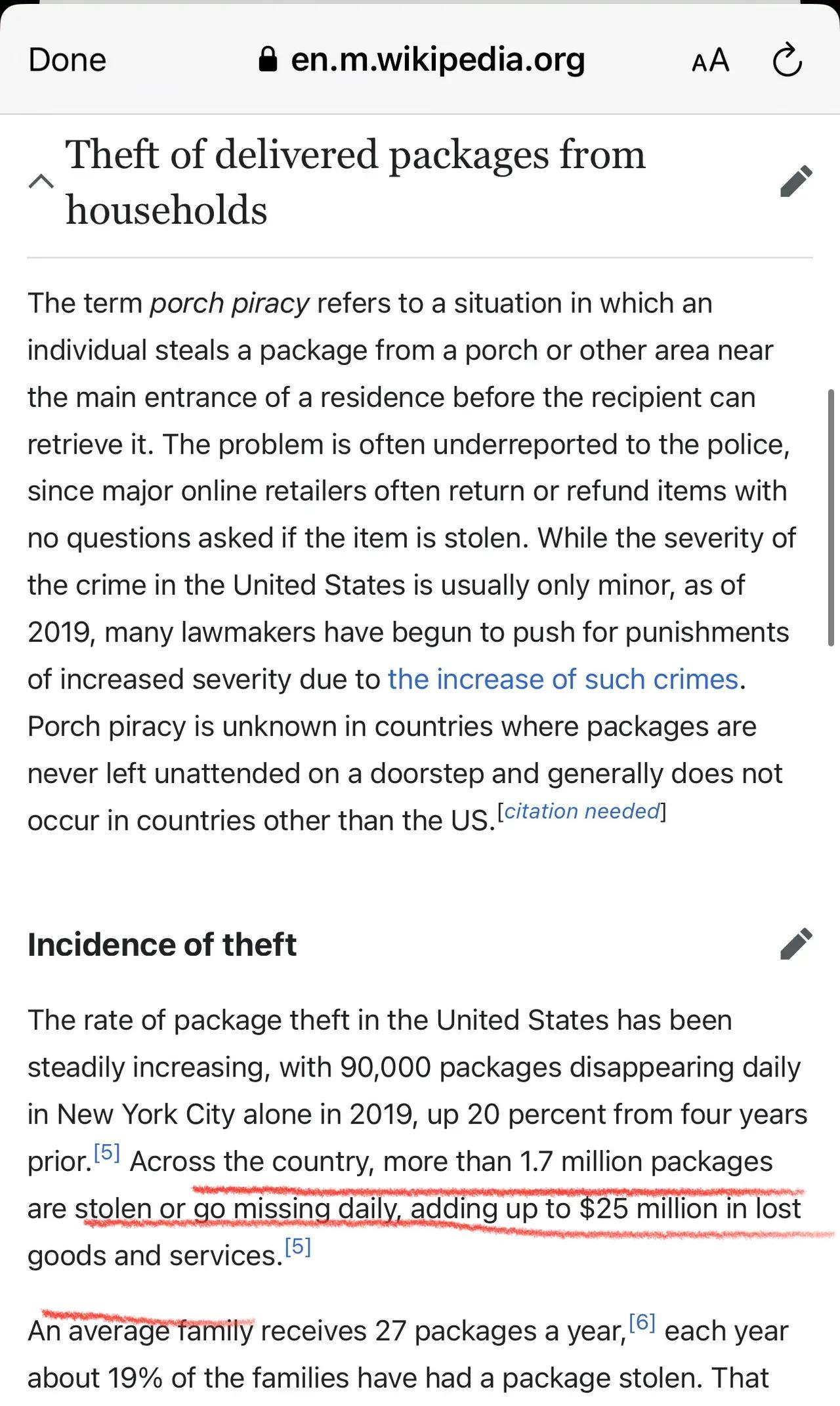 门廊海盗 美国人对那些专门在别人家门口偷快递包裹窃贼的称呼。 在美国每天约有170万件包裹遗失或被盗 。 大都是快递员把包裹放在客户门口后被人偷走。 这些门廊海盗每天开着车四处游荡,看见别人门口有快递包裹他们就偷走。这种情况,快递员不需要负责,因为他已经把包裹送到指定地点,报警也没有,没有监控,没人证人,每天上百万的丢失量,美国警察根本忙不过来,损失只能用户自己承担。 对于包裹被盗,美国人很非常愤怒,呼吁美国邮政部门有所作为,以保证他们快递包裹的安全。 可美国邮政部门毫不理会。也没有办法改变现状。