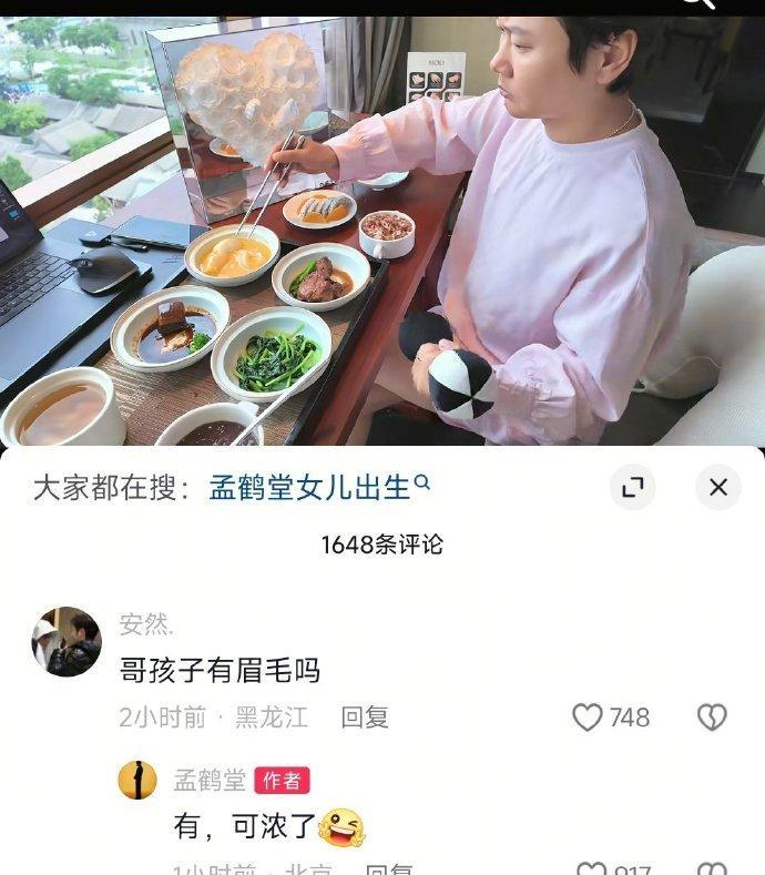 这也太巧了,孟嫂和女儿同一天生日。刚刚,孟鹤堂晒出了一家三口的牵手照。孟嫂也晒出了偷拍孟鹤堂在家小院跳舞的照片。评论区,孟鹤堂祝福妻子生日快乐。孟嫂则恭喜孟鹤堂当上了爸爸。这件事,孟鹤堂做的很到位,对妻子道声同喜,同喜。更有趣的,就是有网友询问孟鹤堂,女儿眉毛如何。人逢喜事精神爽,孟鹤堂回应:有,可浓了。