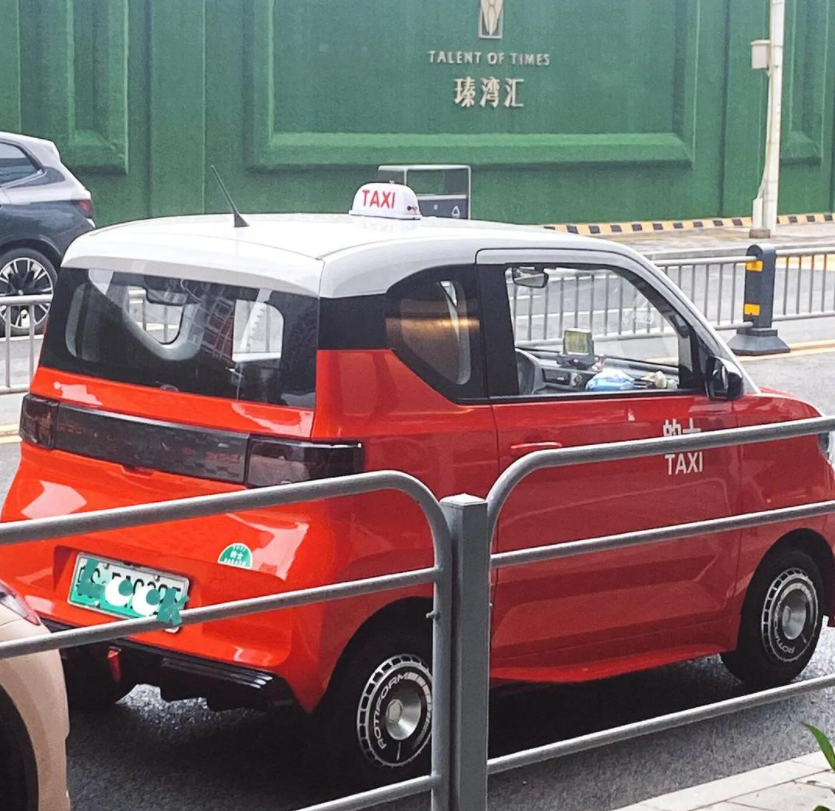 图片上的五菱出租车带有红色的涂装,这表示是在市区里面行驶的出租车,除了大屿山部分区域之外,整个香港都可以跑。