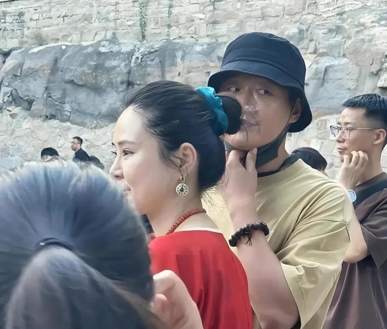 佟大为一家大同游云冈石窟,46岁关悦打扮贵气,小儿子正脸像爸爸